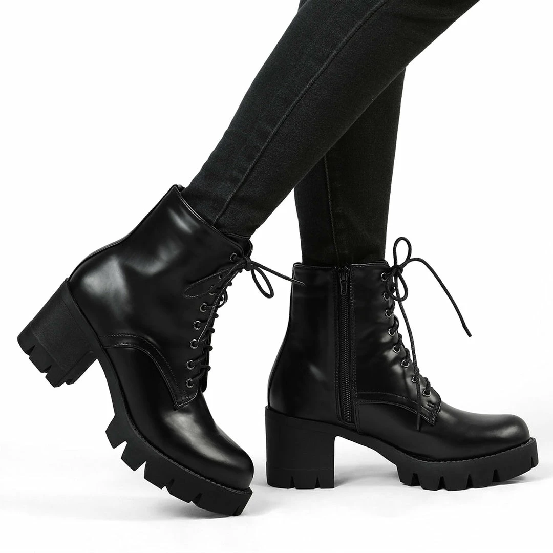 A lace-up ankle boot brings a water-resistant finish,it fits you in winter or rainy day. A block heel design allow the toes to move comfortably.