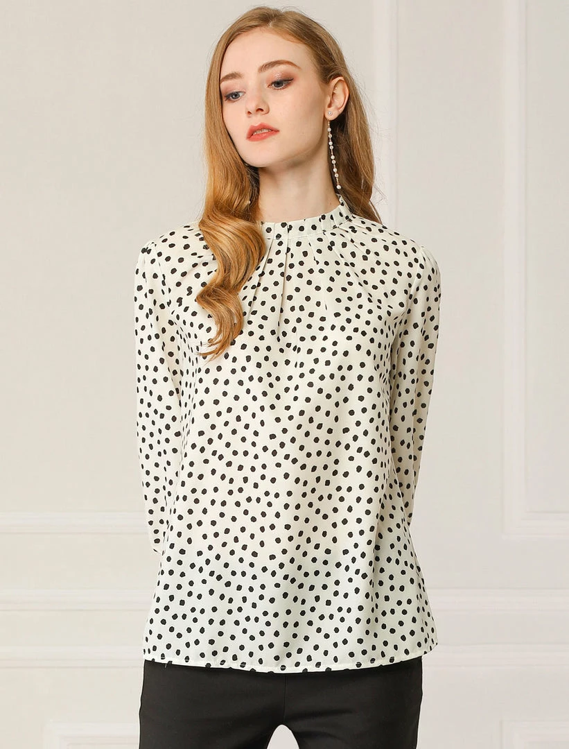 - Designed with a cute polka dot print, the blouse is an easy option for weekdays and weekends.