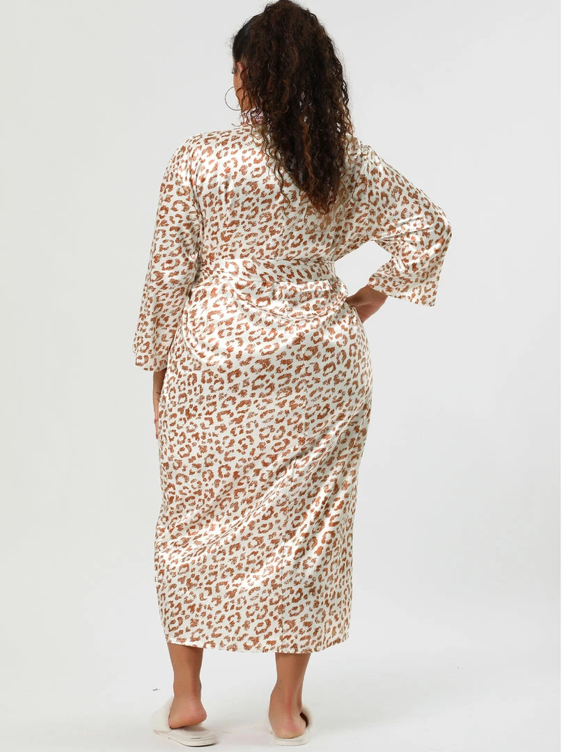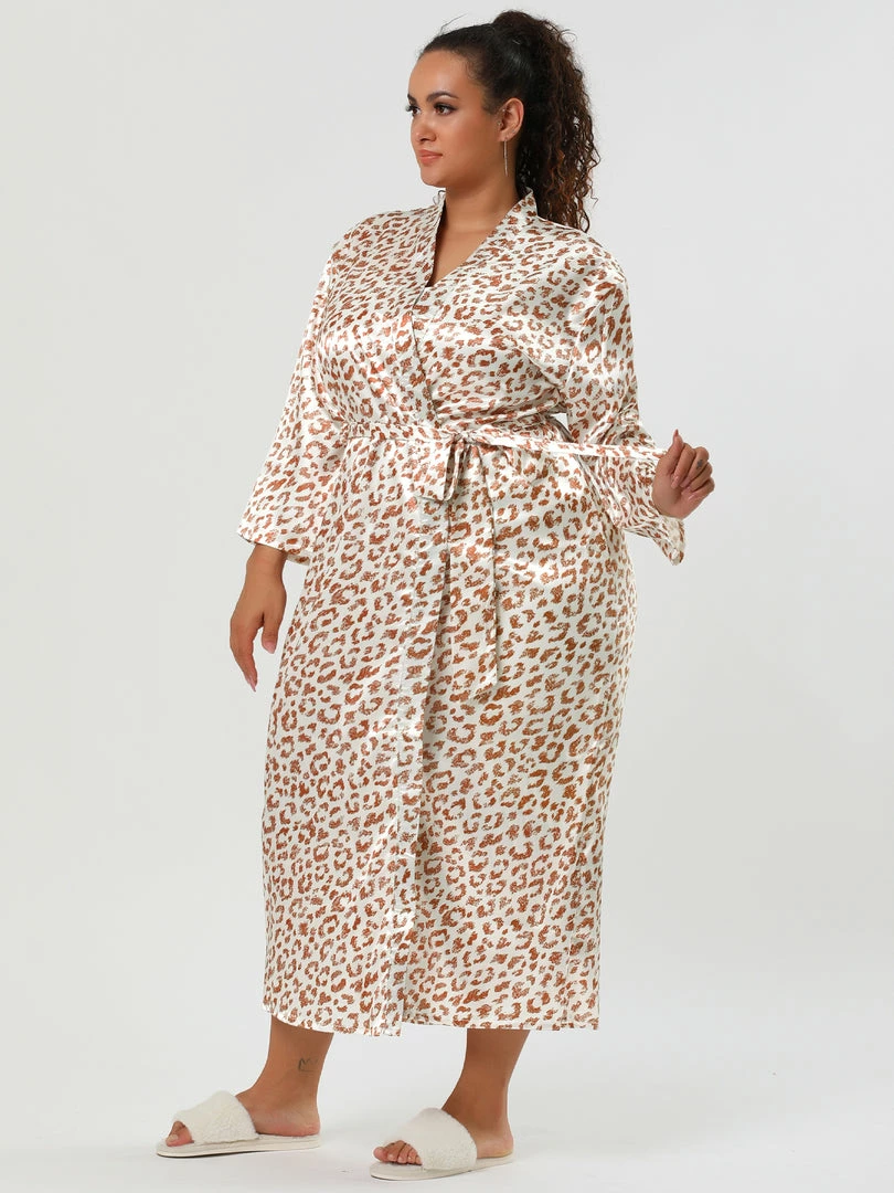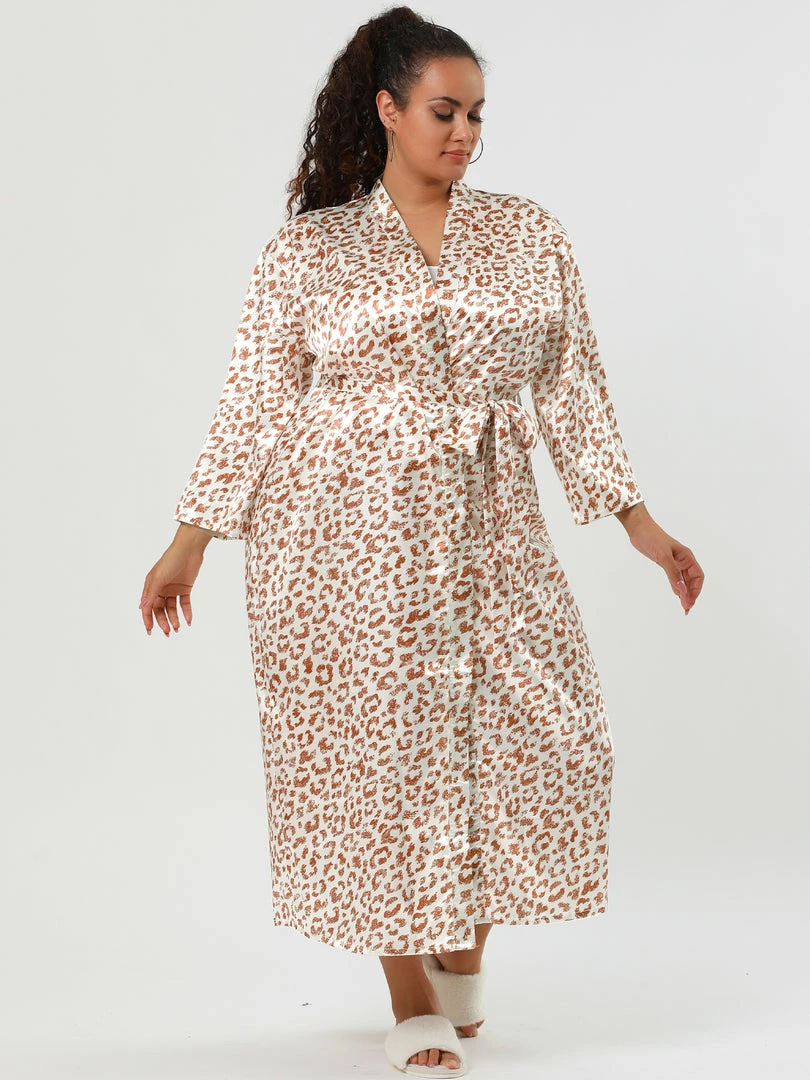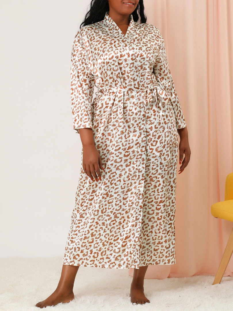 Allegra K Women’s Plus Size Sleepwear Print Long Self Tie Waist Leopard Nightgown