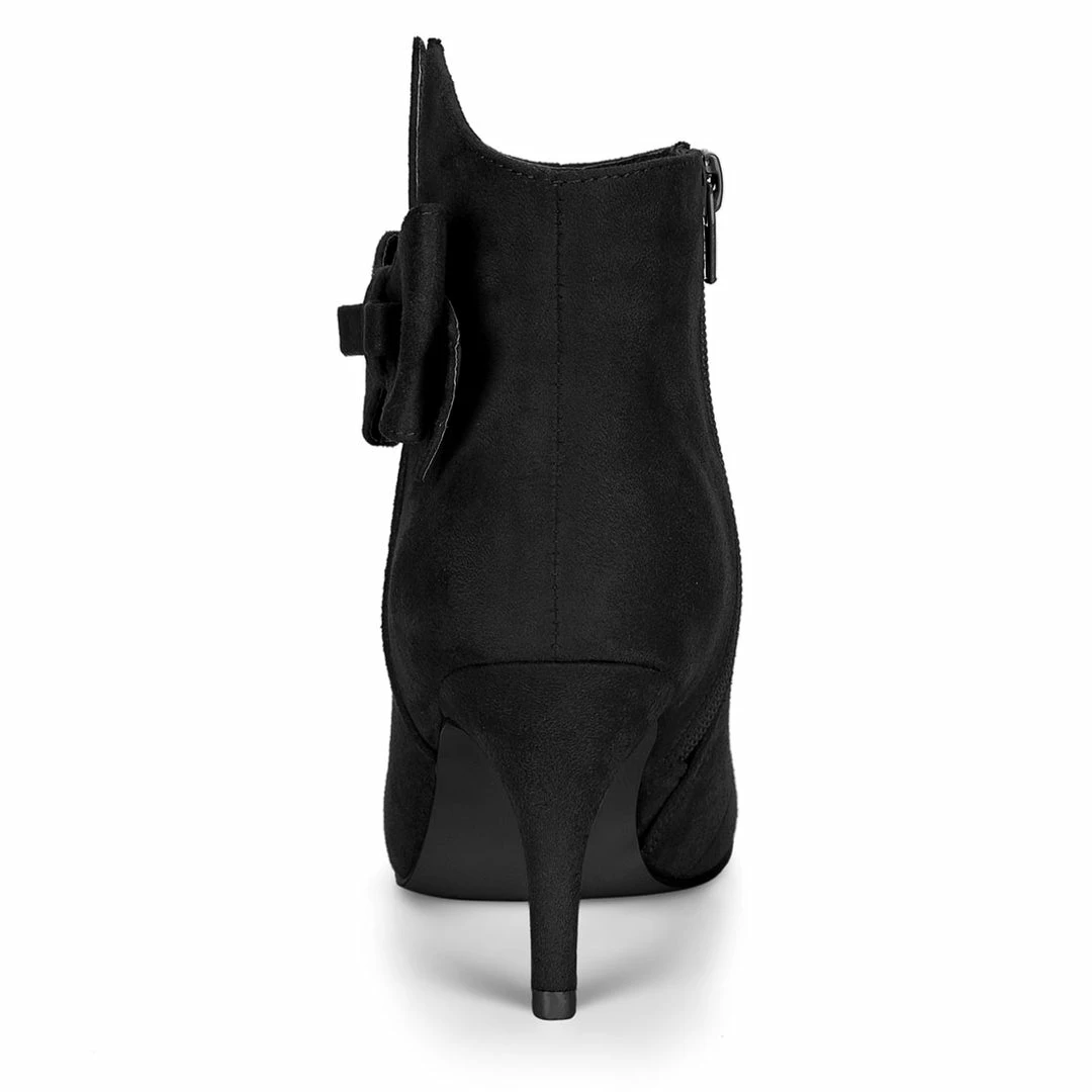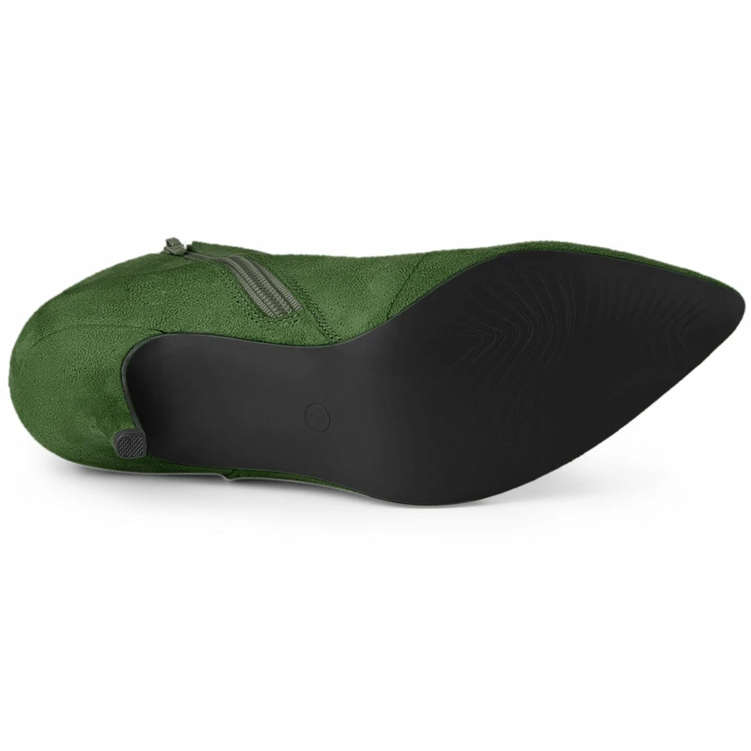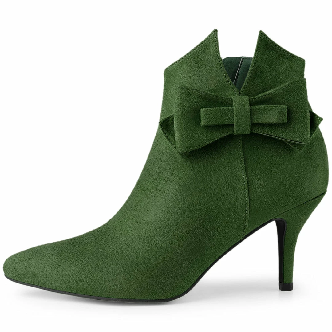 A slim, clean-lined silhouette featuring a pointy toe and setback stiletto makes this ankle boot perfect for adding a sharp finishing touch to your look.