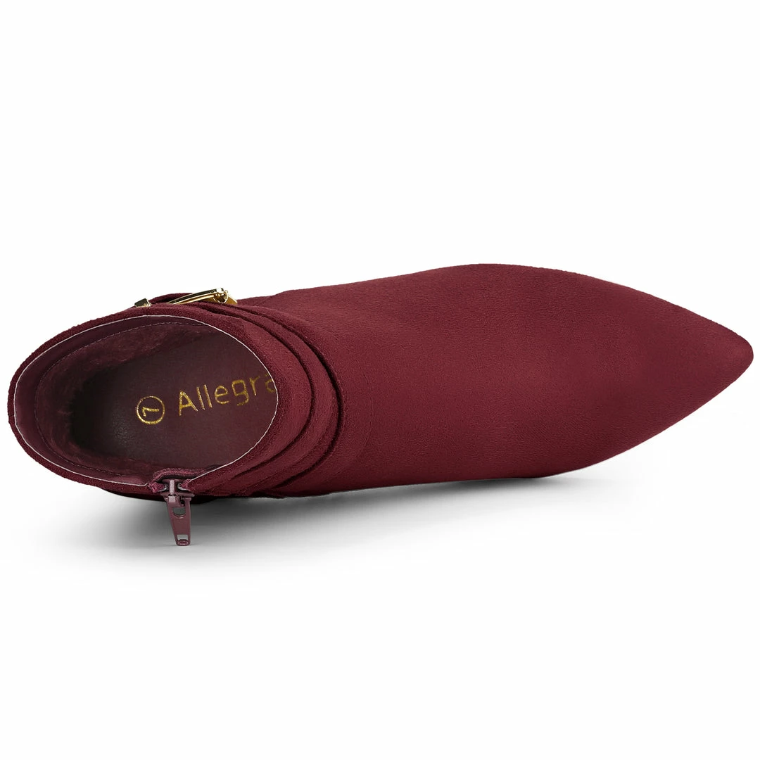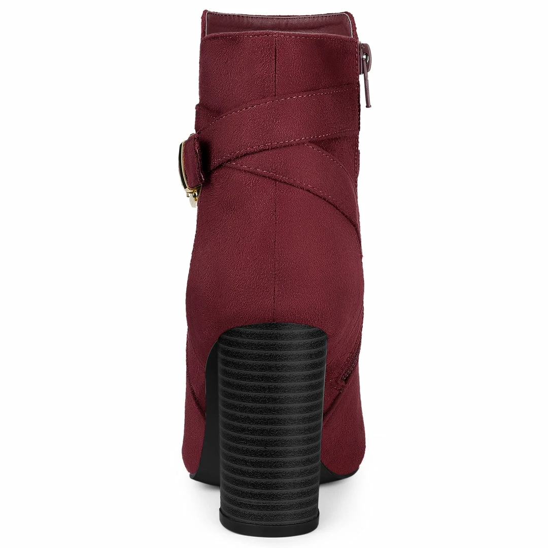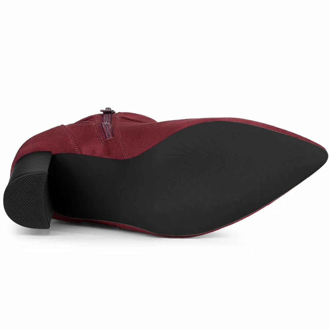 Spruce up your casual looking with these charming pointed toe ankle boots rendered in luxurious faux suede, for ease-of-wear, while the chunky heel promises all-day comfort.