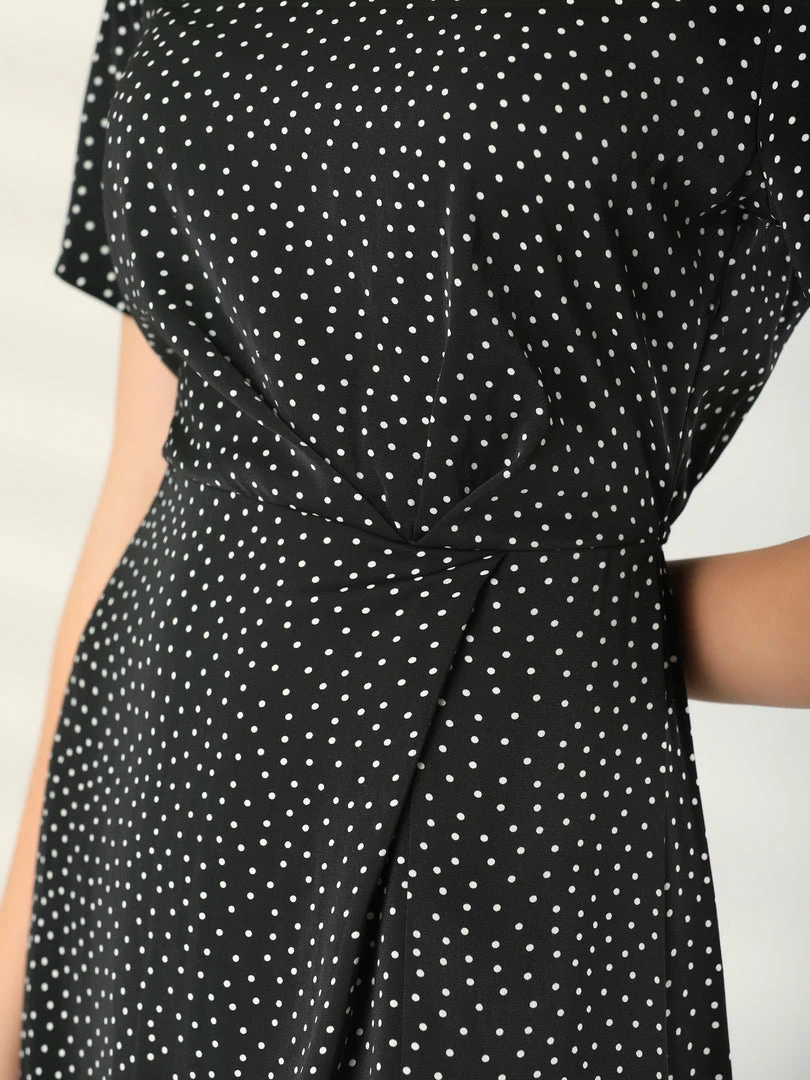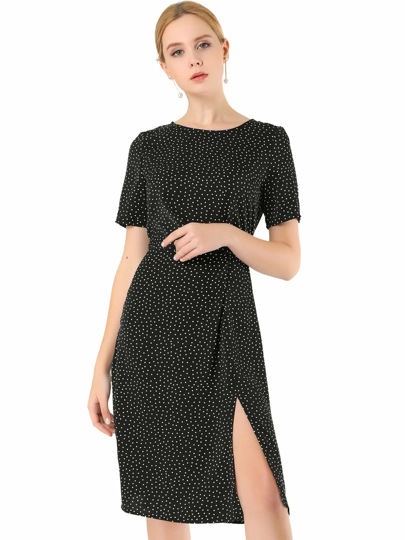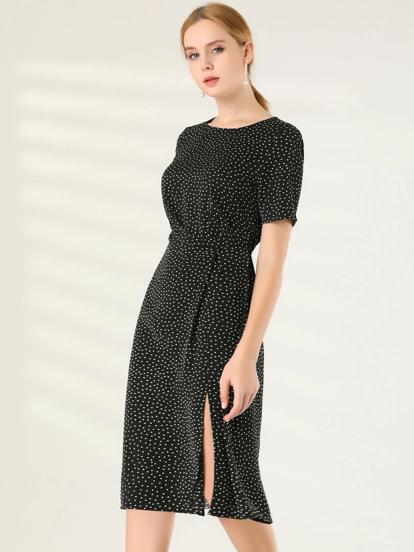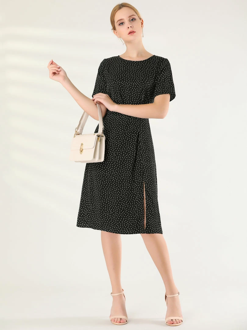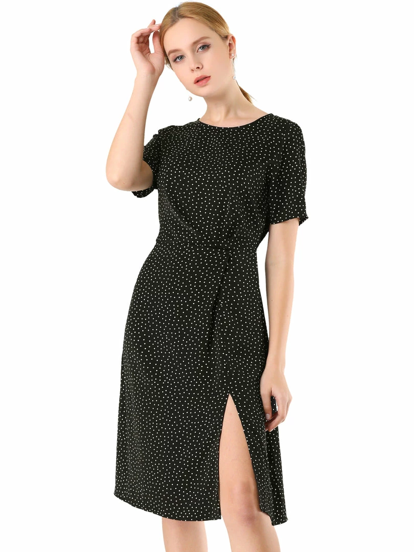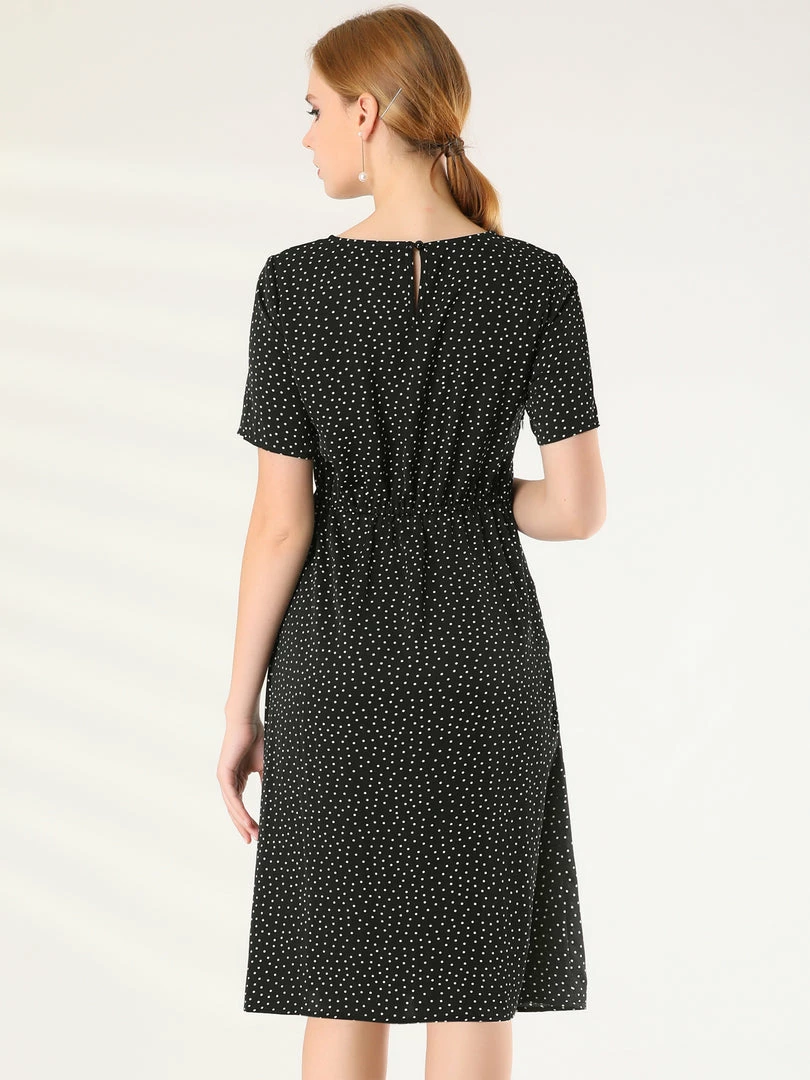 Allegra K Women’s Polka Dots Vintage Round Neck Elastic Waist Back Split Fit And Flare Dress