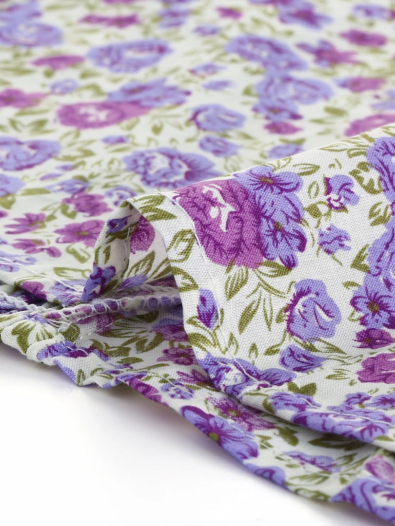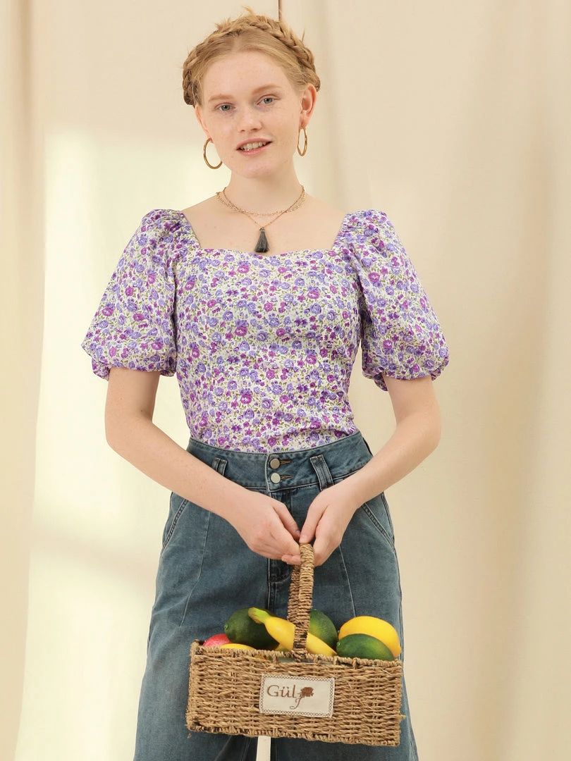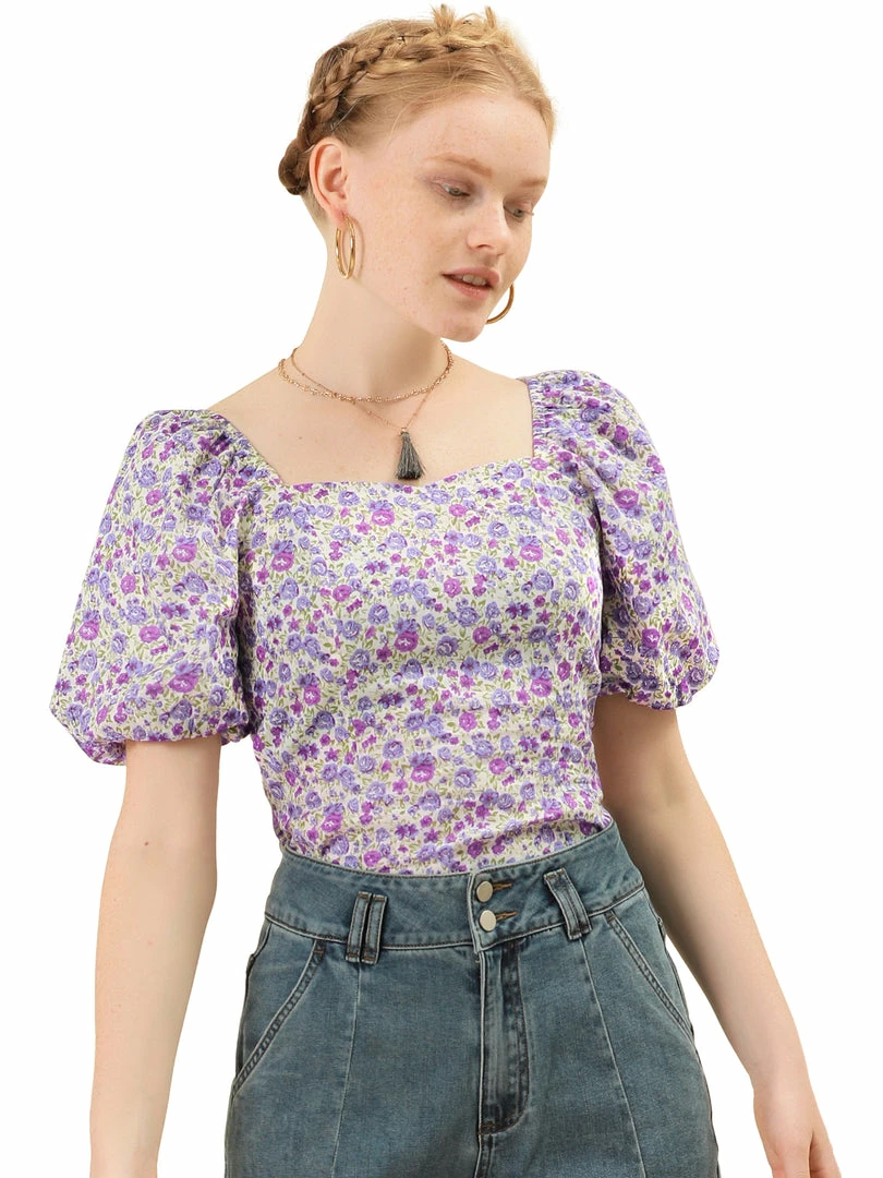 - Romance and retro are in the air with this casual floral tops styled with puff sleeves, smocked back and sweetheart neckline.