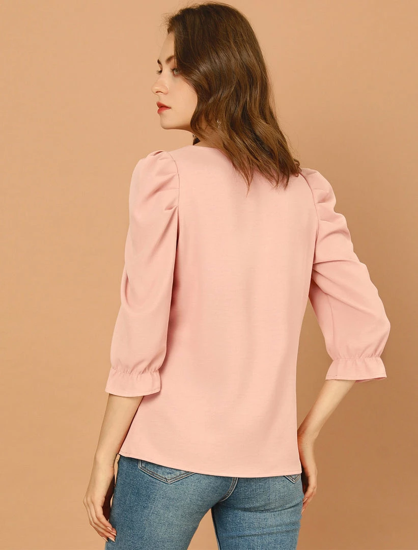 • Adorned with puff sleeves and neutral hue, this solid color blouse adds a fashionable spin to your looks.
