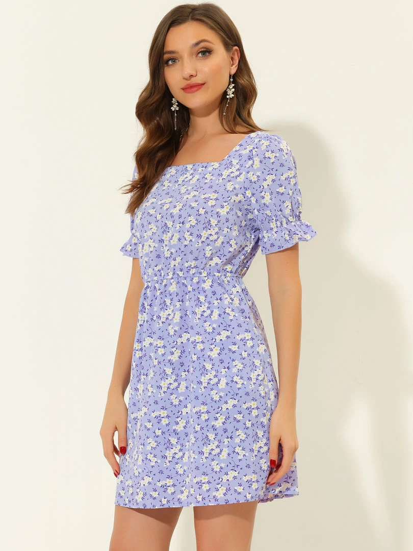 Square neck and Ruffle Cuff design add charming to this sweet dress