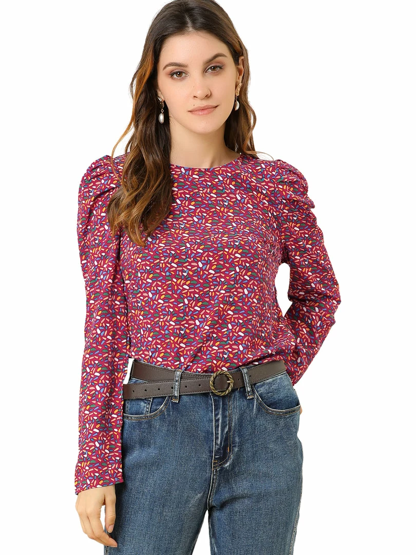 Allegra K Women’s Puff Sleeve Top Retro Round Neck Puffy Blouse Tops