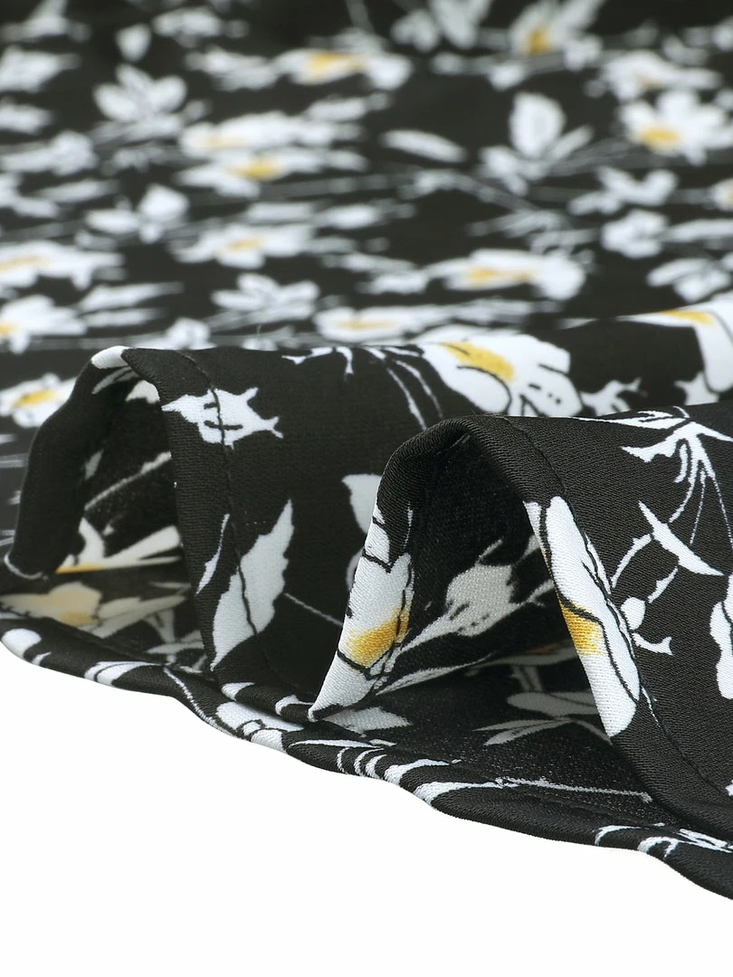 Allegra K Women’s Retro 3/4 Sleeve Keyhole Tie Neck Floral Blouse