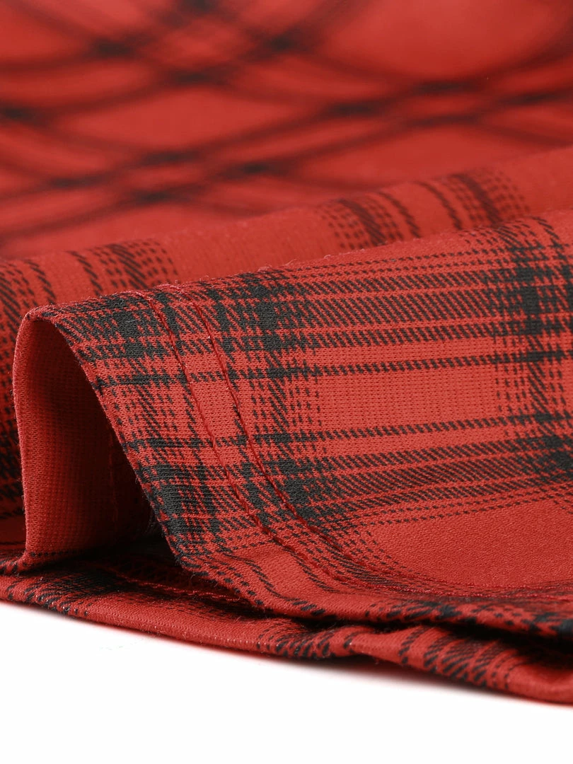 - Features a plaid pattern and an A-line design shape for a feminine silhouette.