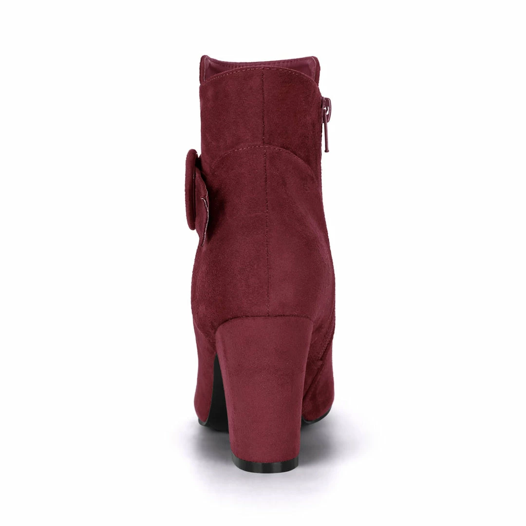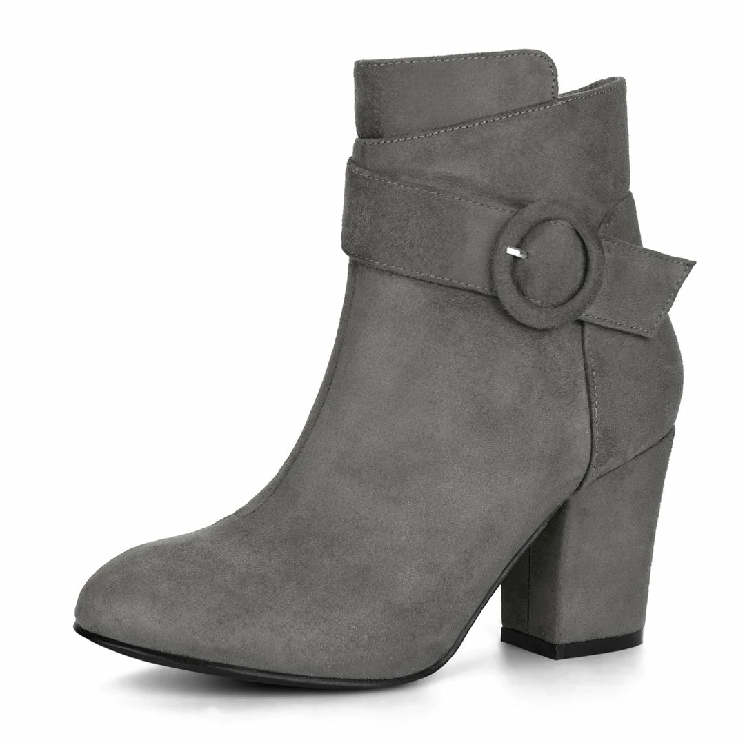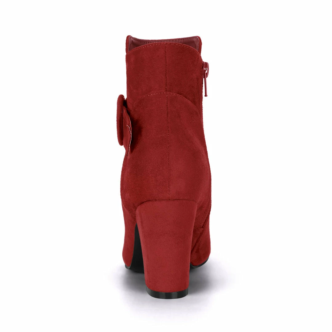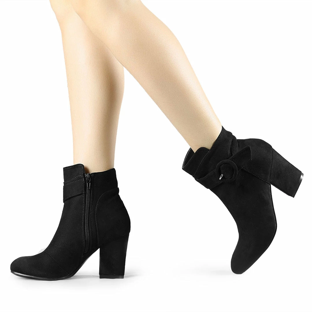 This boot features a blocked heel, ankle strap decor, side zipper for easy on and off, and rounded toe design. These shoes can be worn on a special occasion or a date.