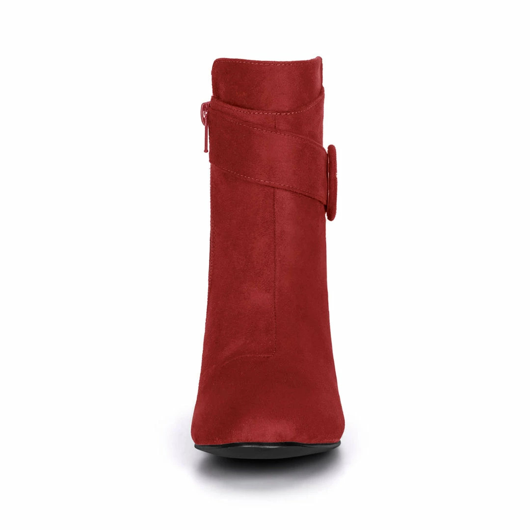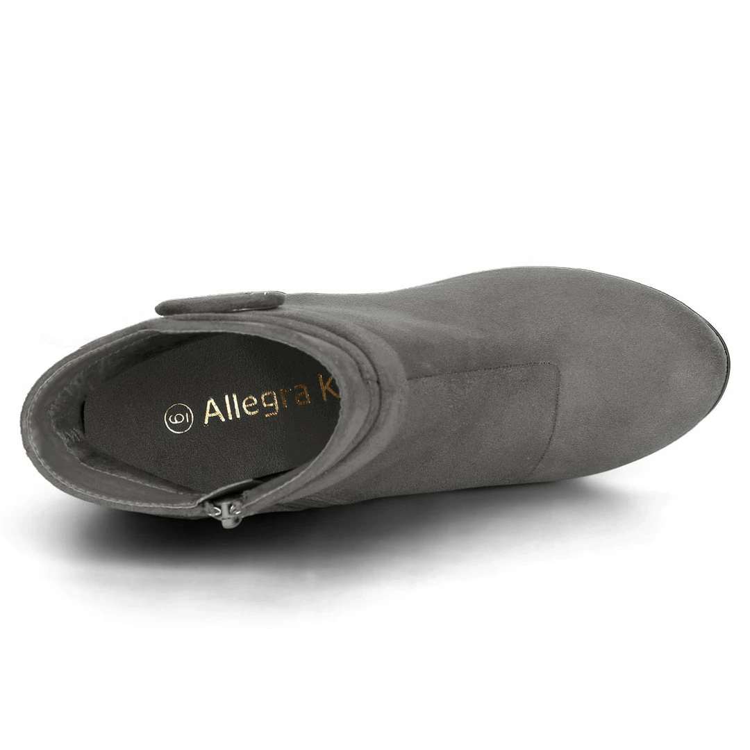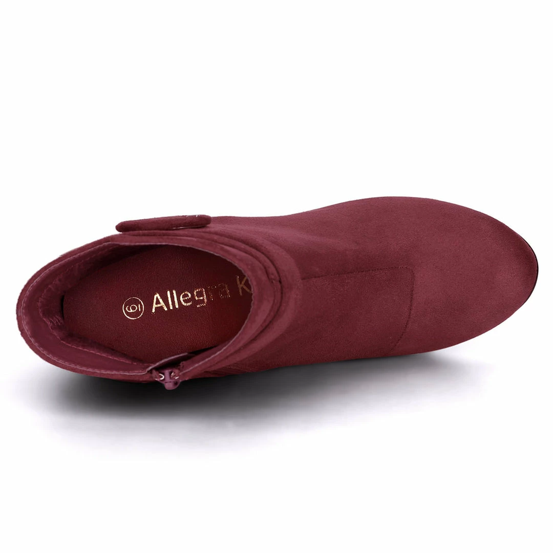 This boot features a blocked heel, ankle strap decor, side zipper for easy on and off, and rounded toe design. These shoes can be worn on a special occasion or a date.