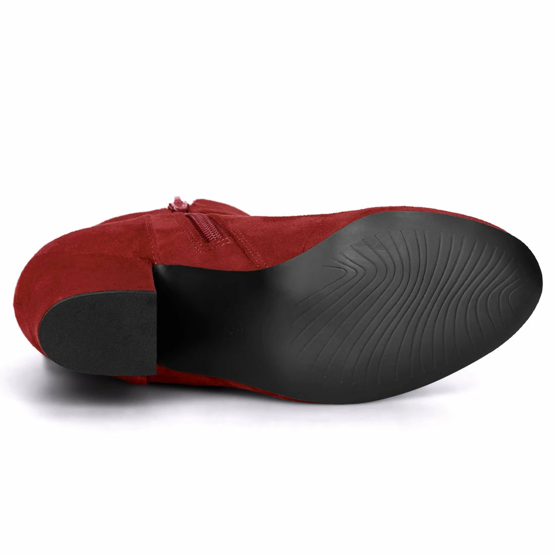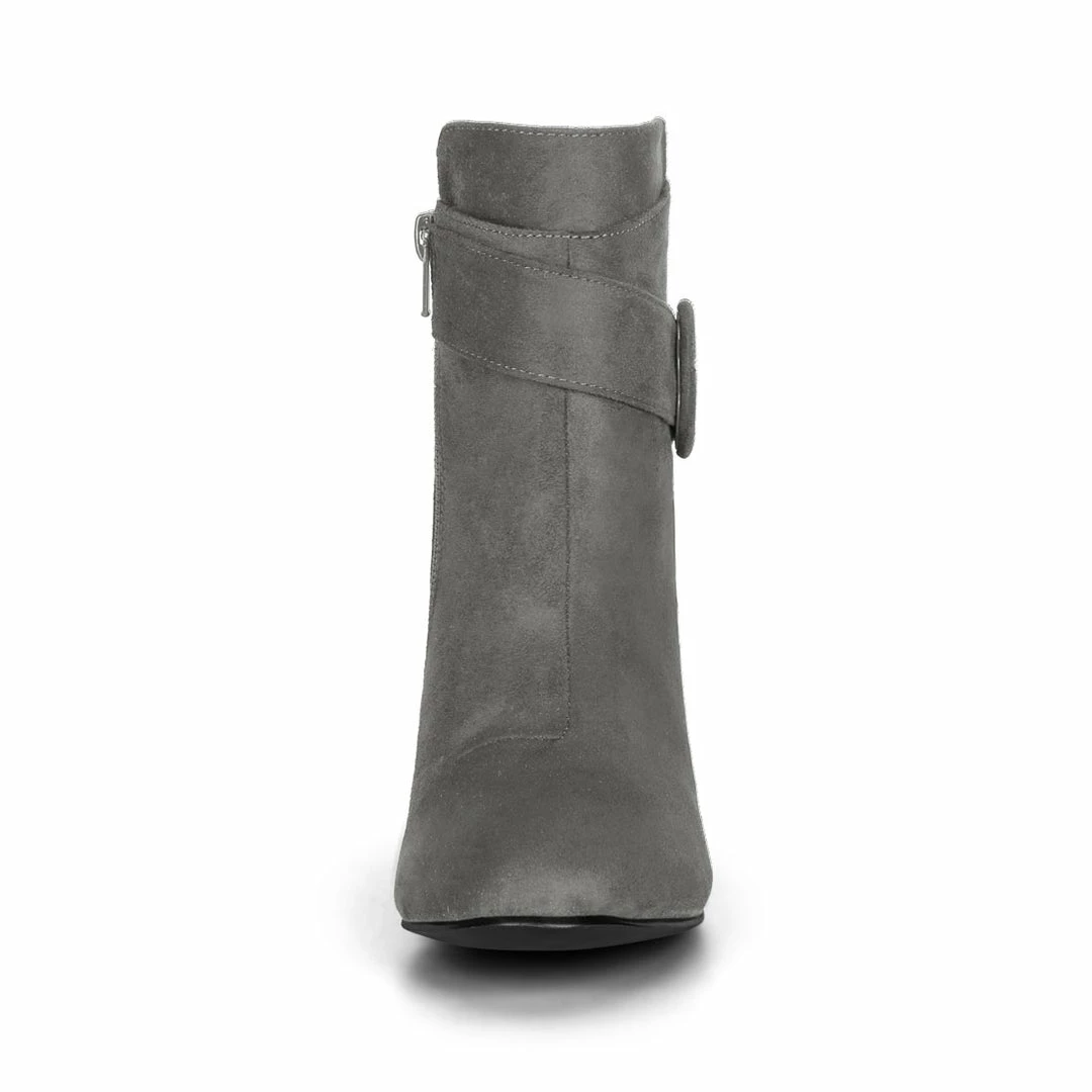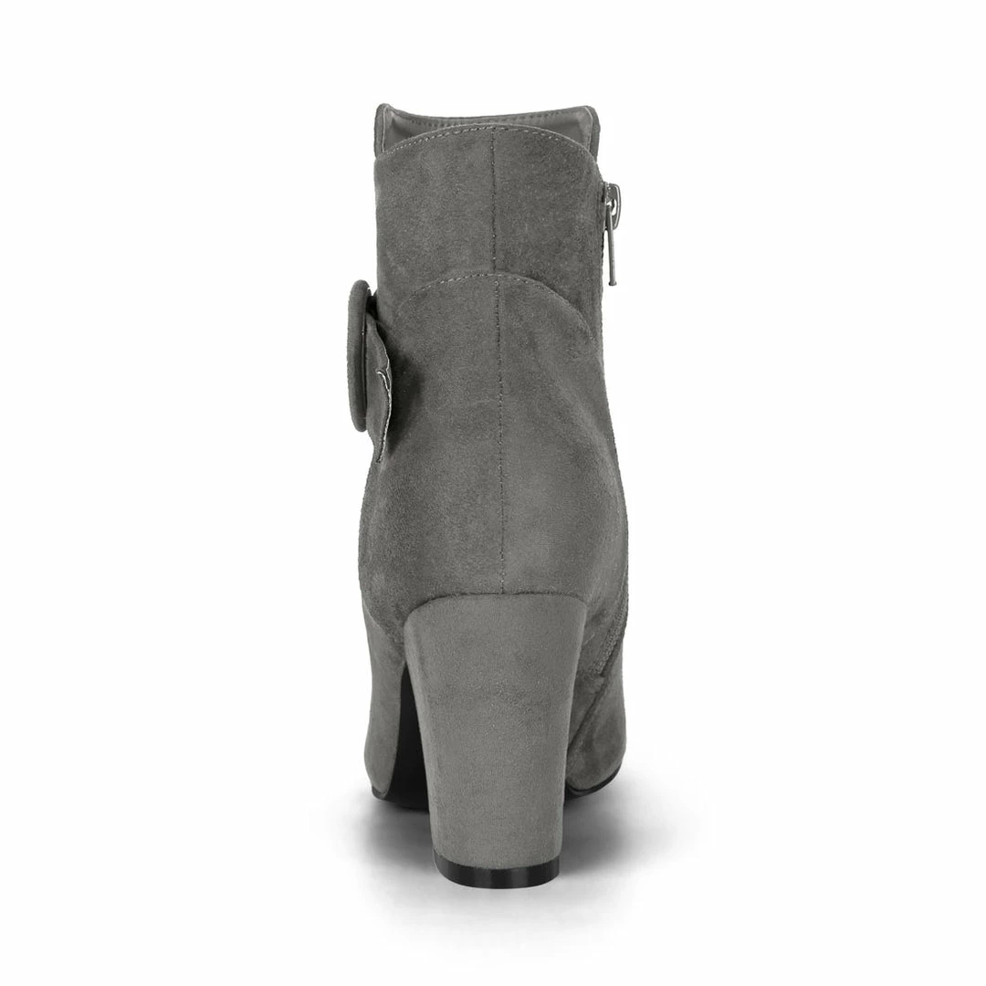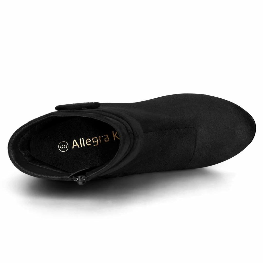 This boot features a blocked heel, ankle strap decor, side zipper for easy on and off, and rounded toe design. These shoes can be worn on a special occasion or a date.