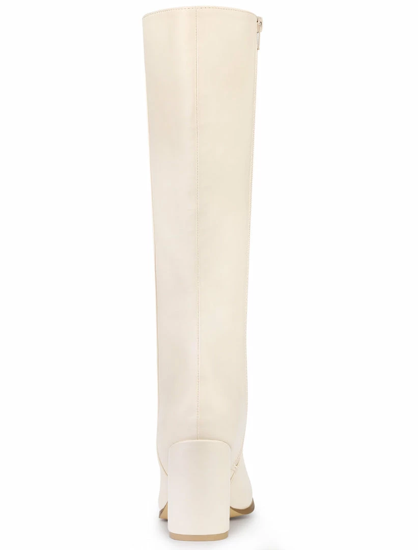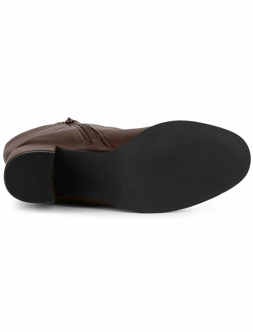 These fashionable chunky heels over knee high ankle boots with zip closure, a surefire way to top off any outfit, from jeans to shorts, dresses and skirts of any length, make you more eye-catching.