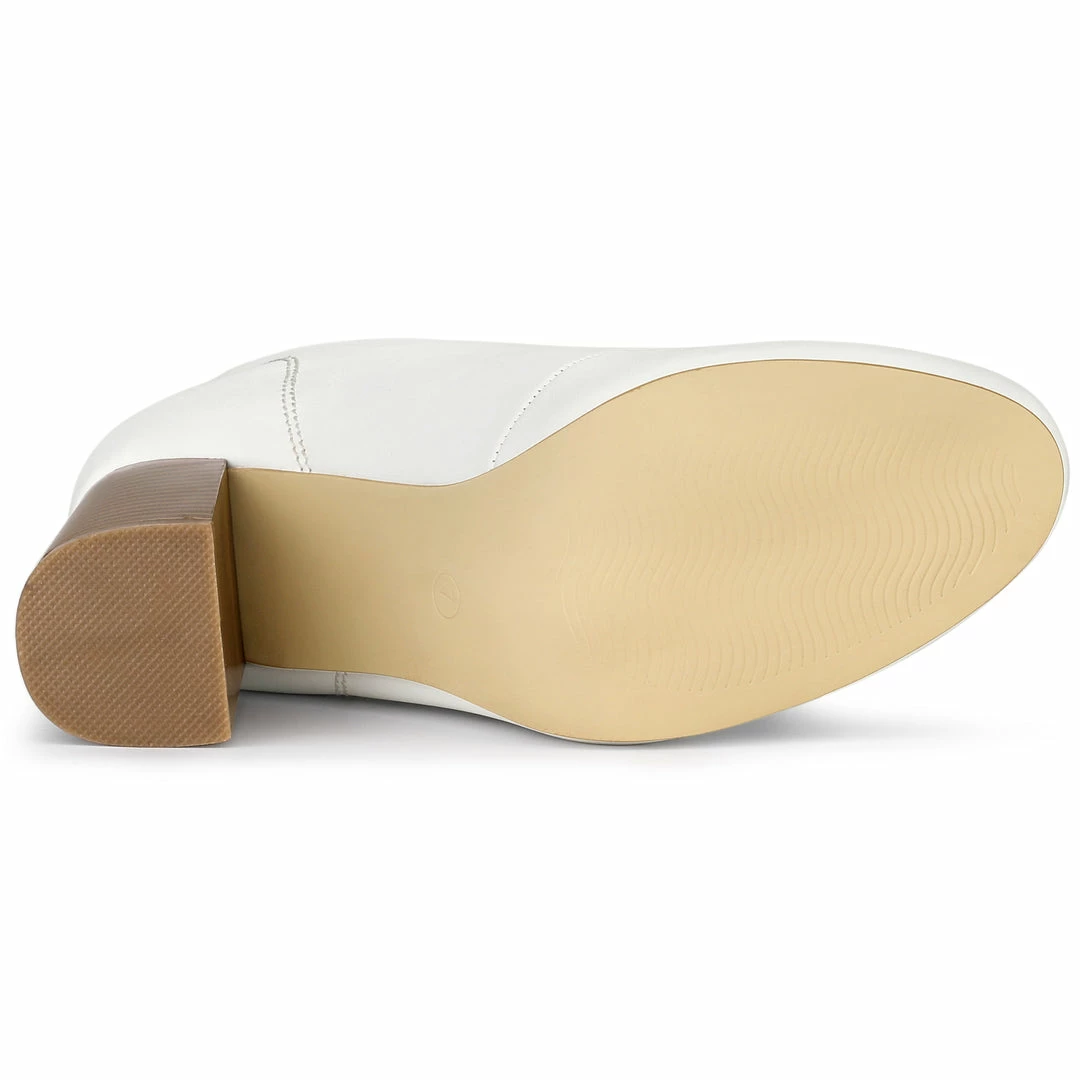 These fashionable patent decor ankle boots have a round toe with a coordinating chunky heel and cross strap for a versatile beauty that can’t be beaten.