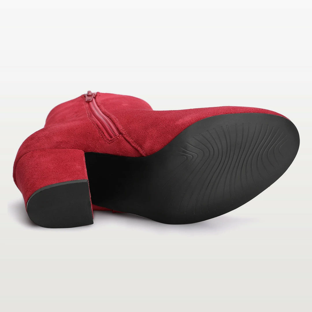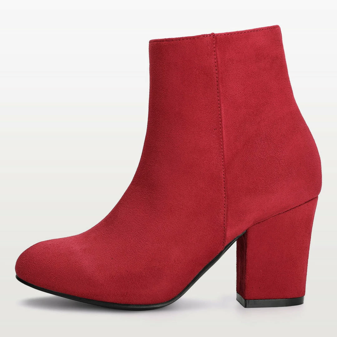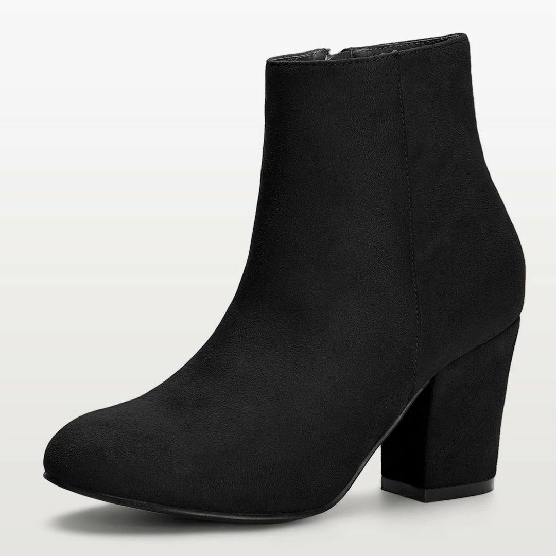 A tall, chunky heel adds a solid lift to this feminine booties. It is finished with a rounded toe, western style and a side zipper.
