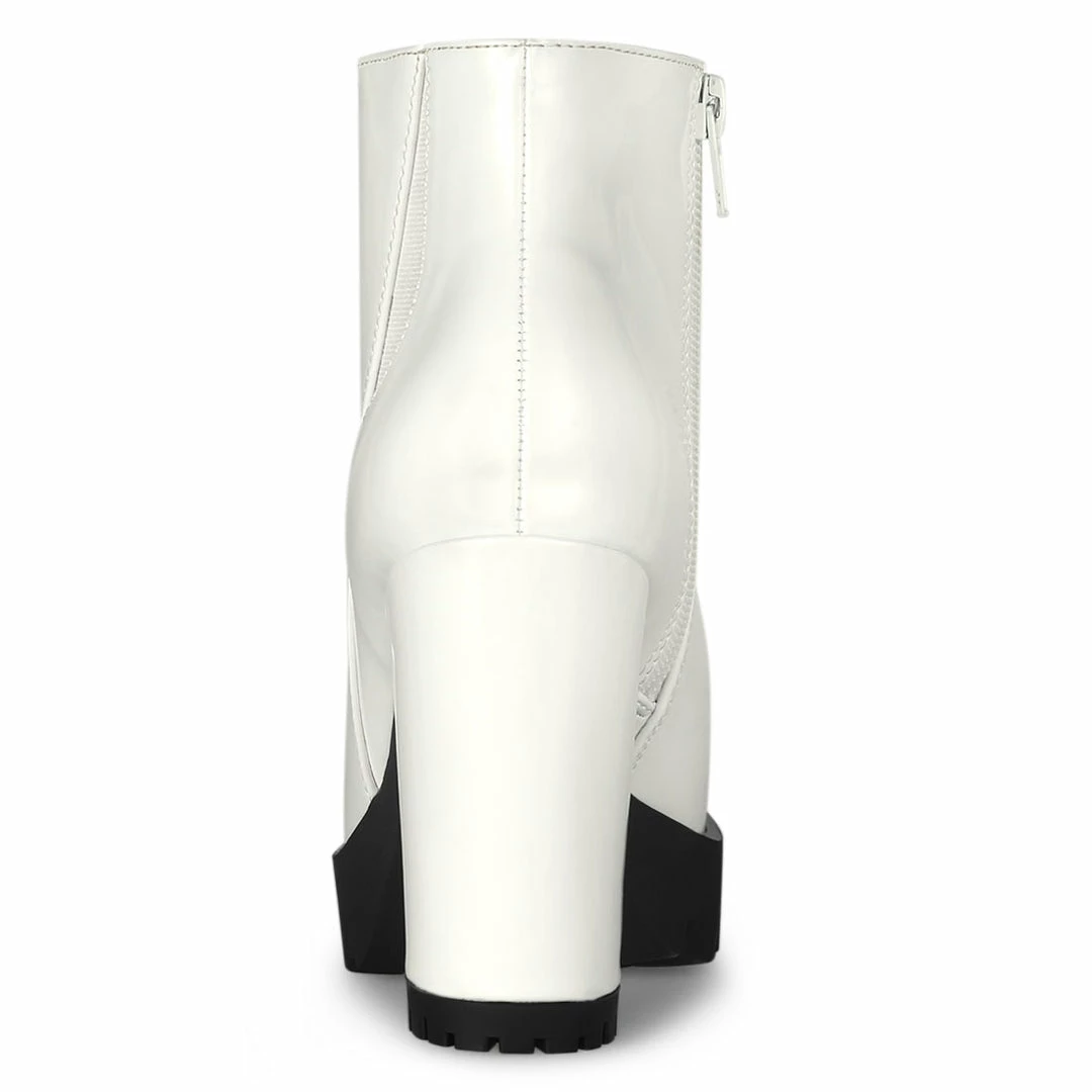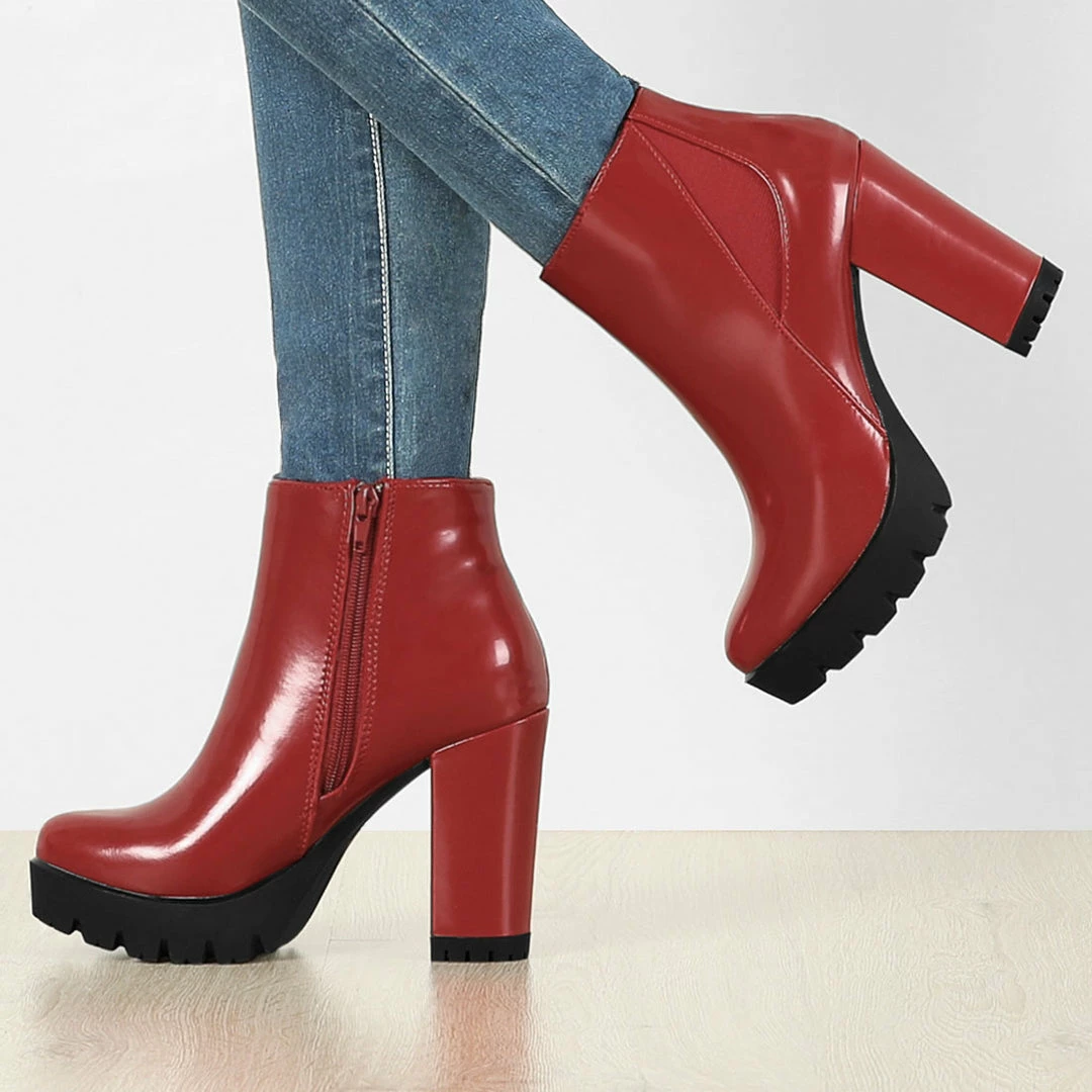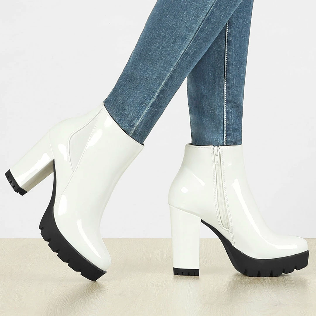 No winter wardrobe is complete without a pair of funky platform ankle boots. These PU boots from Spot On, will introduce an edgy touch to your footwear collection. With a solid chunky heel, side zips for fastening, team with skinny jeans and a poncho from our full range for the top to toe look.