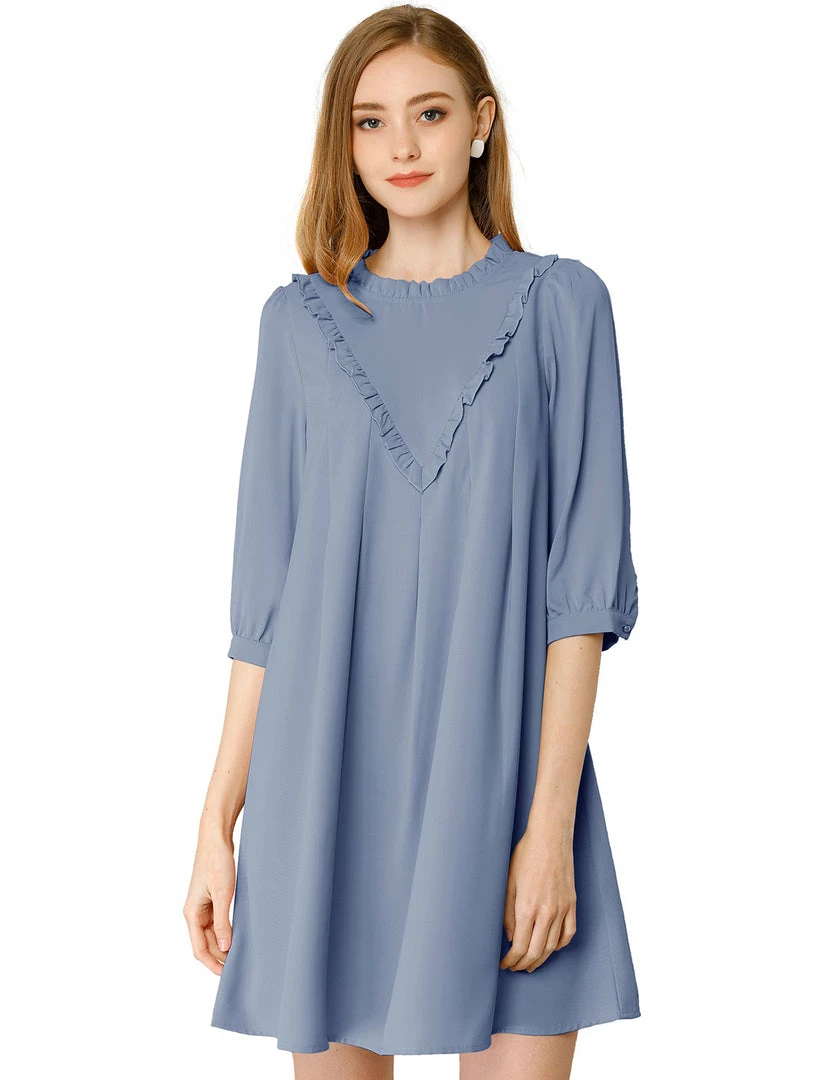 Allegra K Women’s Ruffle Casual Round Neck Loose Shift Tunic Dresses T Shirt Dress