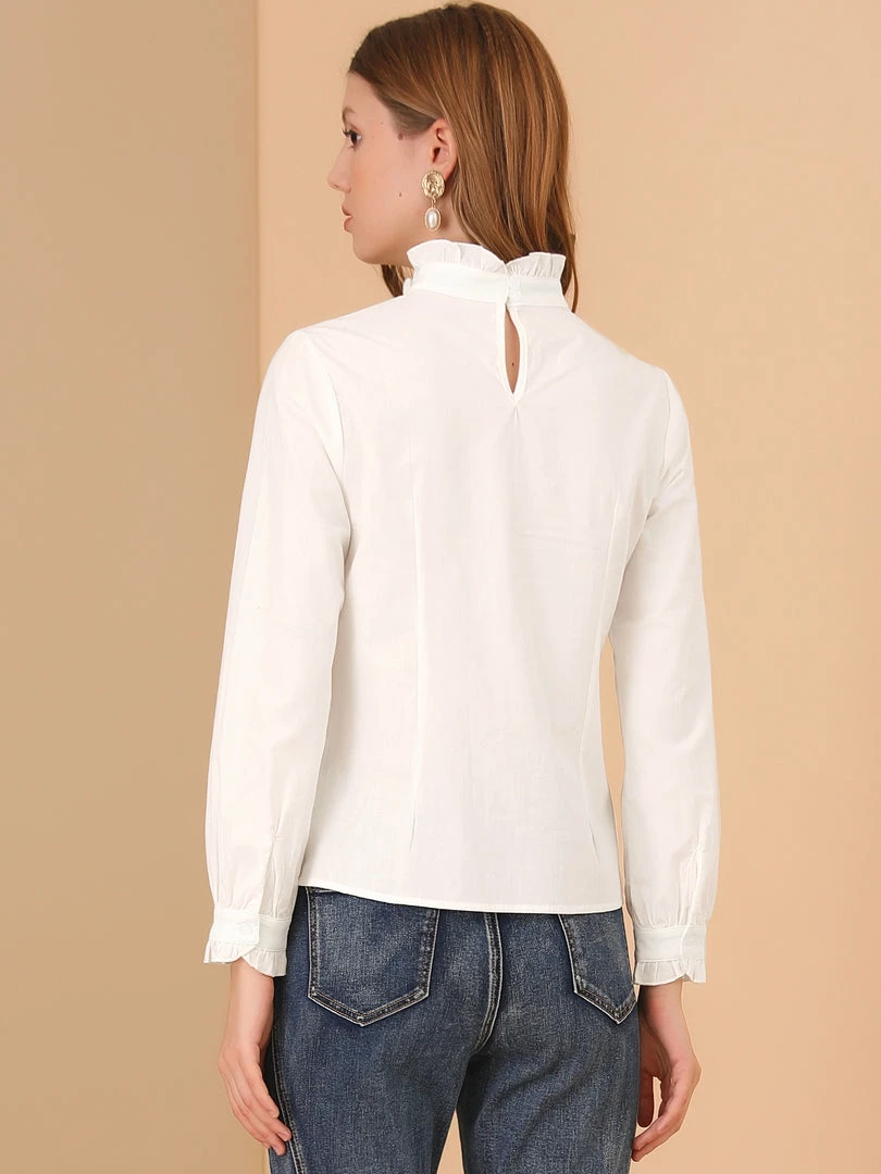Allegra K Women’s Ruffle Collar Long Sleeve Lace Crochet Cotton Tops