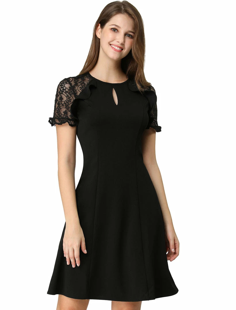 • Bring versatile style to your wardrobe with the ruffle A-Line Dress. In a solid color, this A-line dress features a figure-flattering silhouette that can be easily dressed up or dressed down.