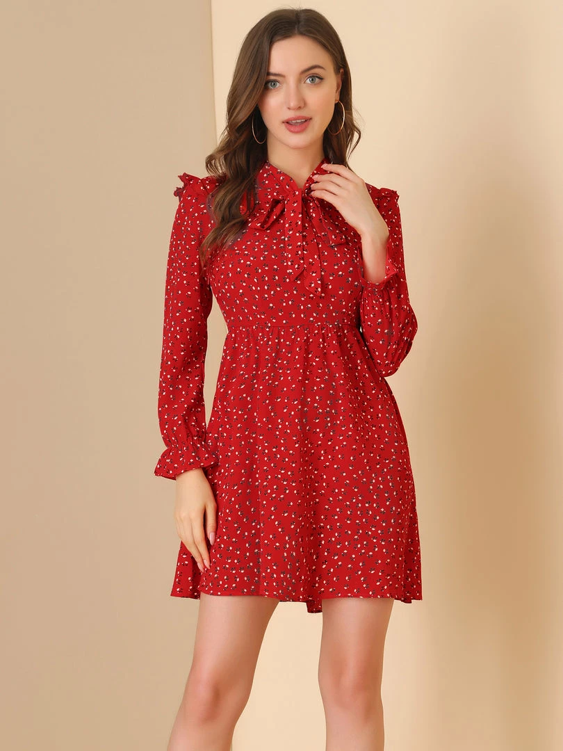 Allegra K Women’s Ruffle Long Sleeve V Neck Bow Tie Dress