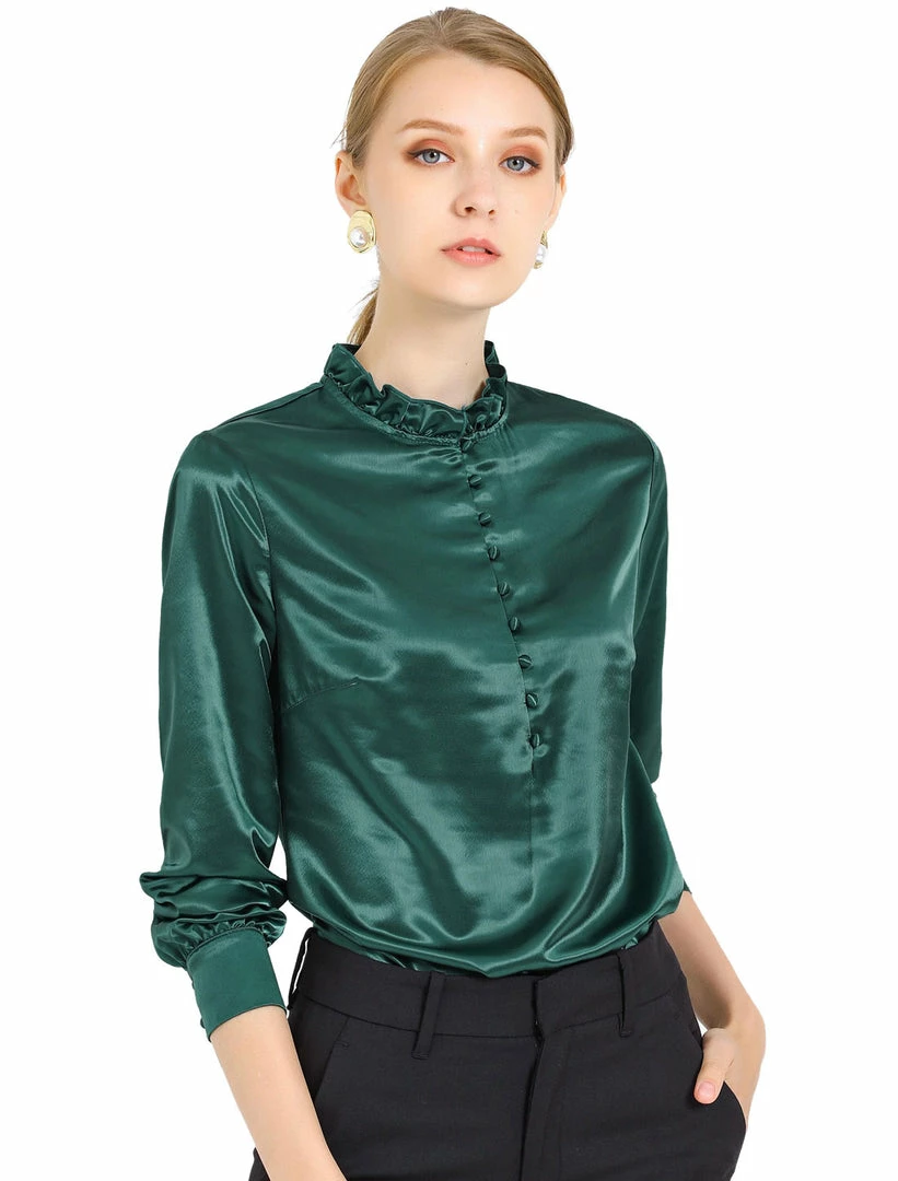 SKU: allegra-k-6762147872948 Categories: Clothing, Tops & Blouses, Women Tags: Green, Holiday, Long Sleeve, Regular fit, Ruffle, S, Tops & Blouses, Workwear