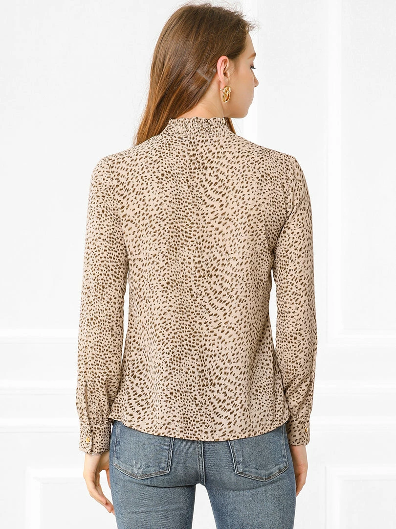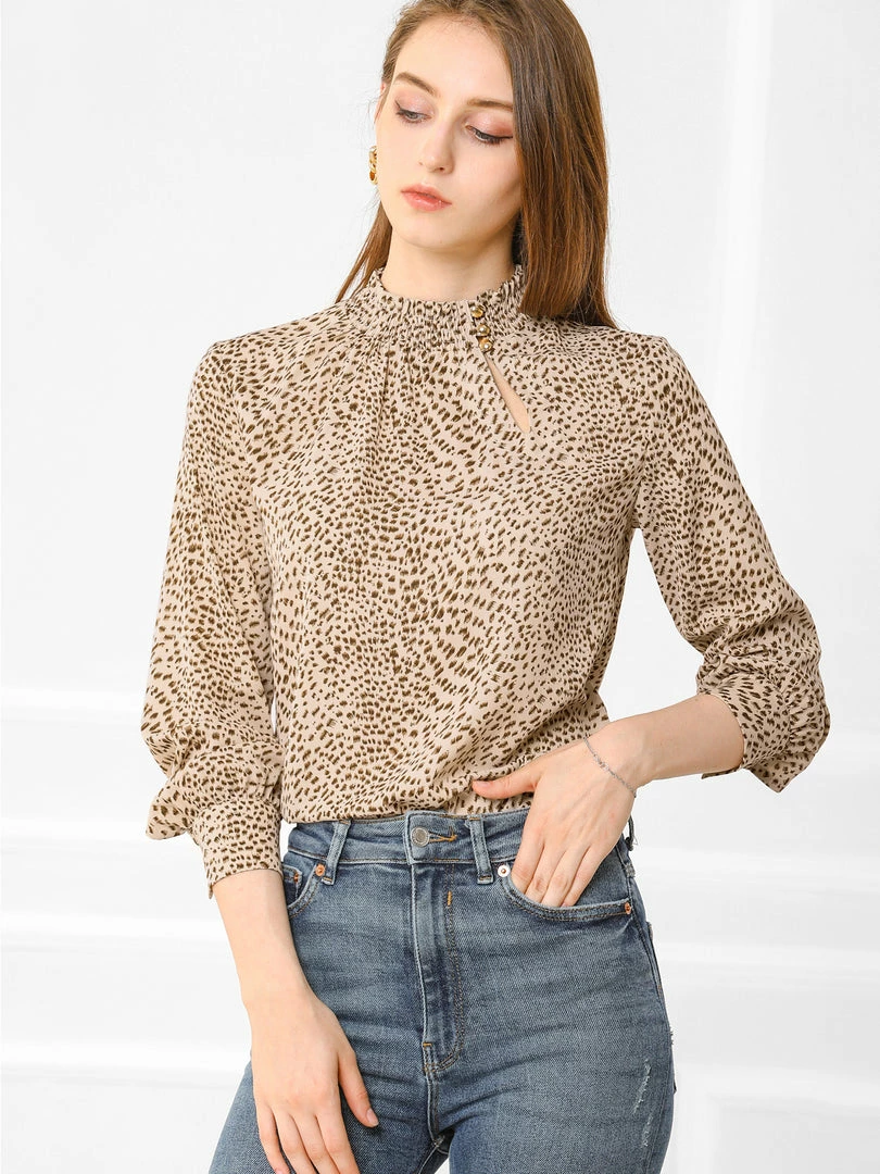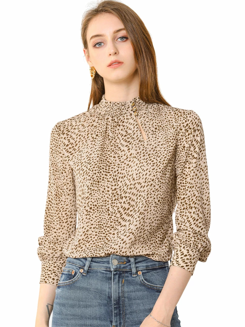 Allegra K Women’s Ruffle Mock Neck Print Blouse Button Keyhole Long Sleeves Tops