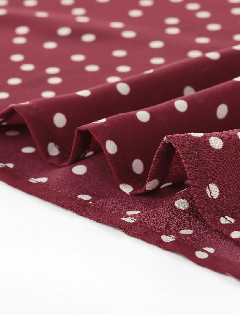 - Our polka dots tops are styled with lightweight fabric, neckline and shoulder are accented with ruffled trim.