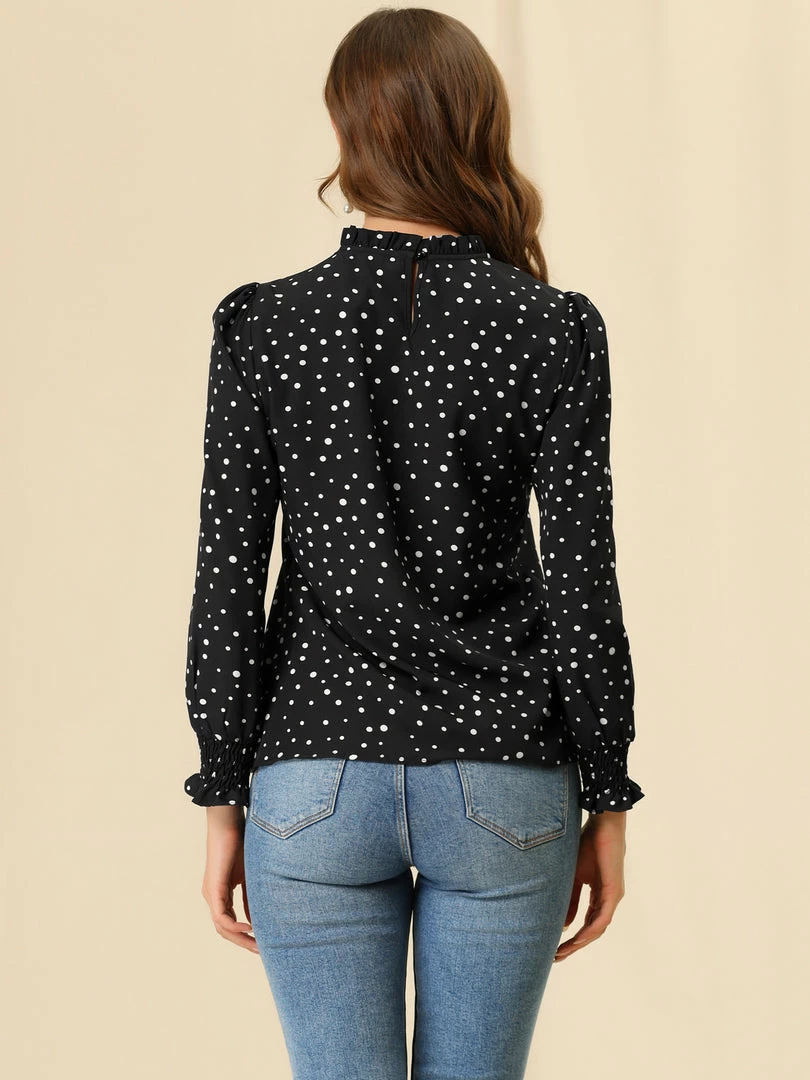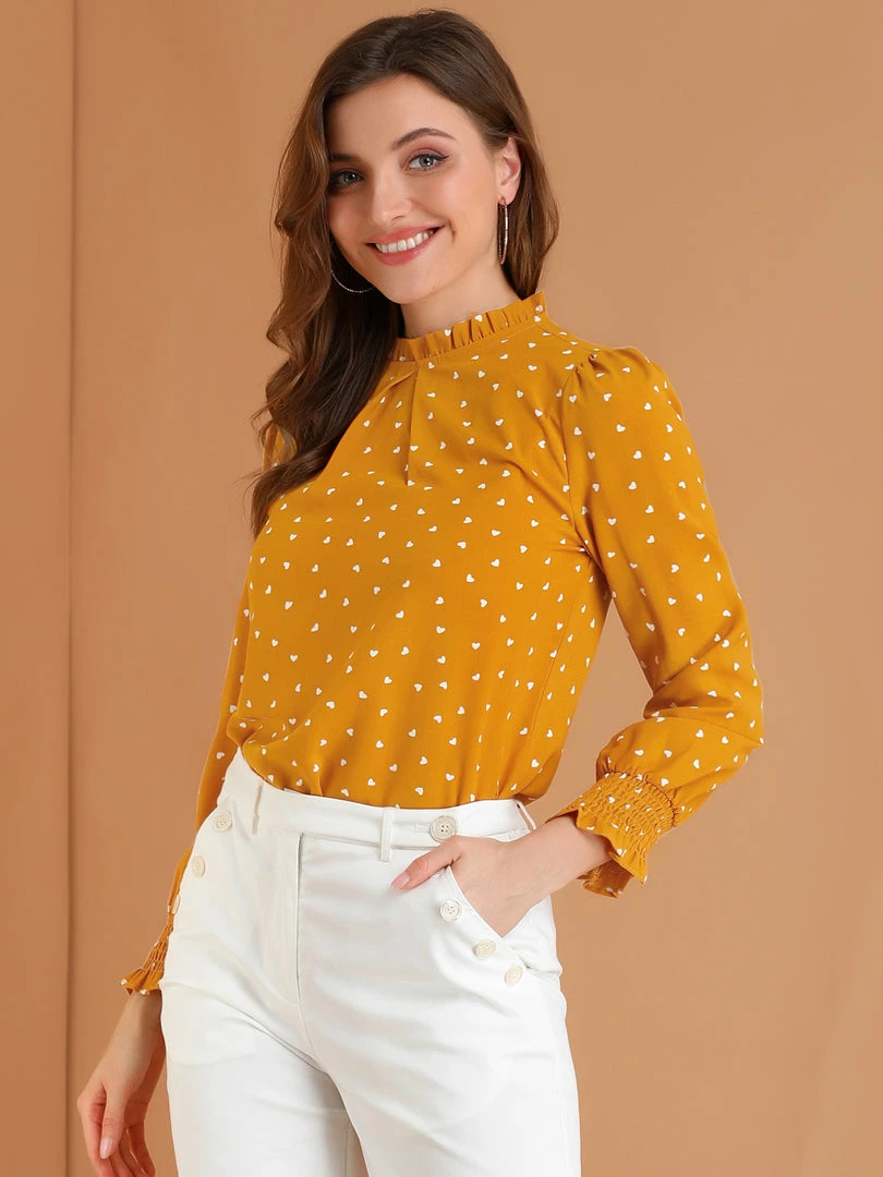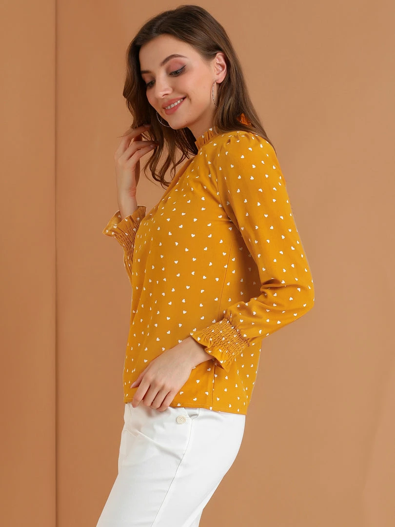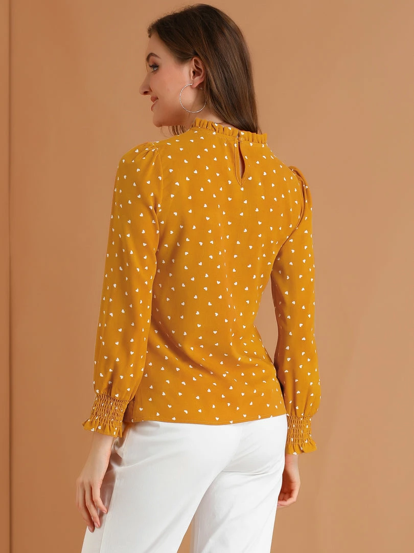 Allegra K Women’s Ruffled Neck Smocked Long Sleeve Floral Printed Blouse Top