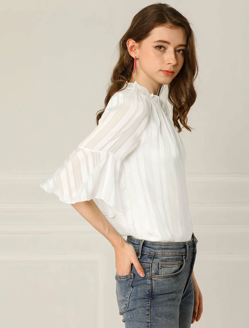 Allegra K Women’s Ruffled Neck Vintage Bell Sleeves Chiffon Blouses