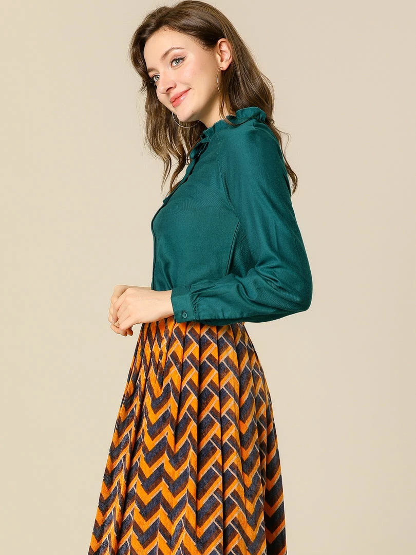Allegra K Women’s Ruffled Tie Neck Raglan Sleeve Button Up Office Shirt
