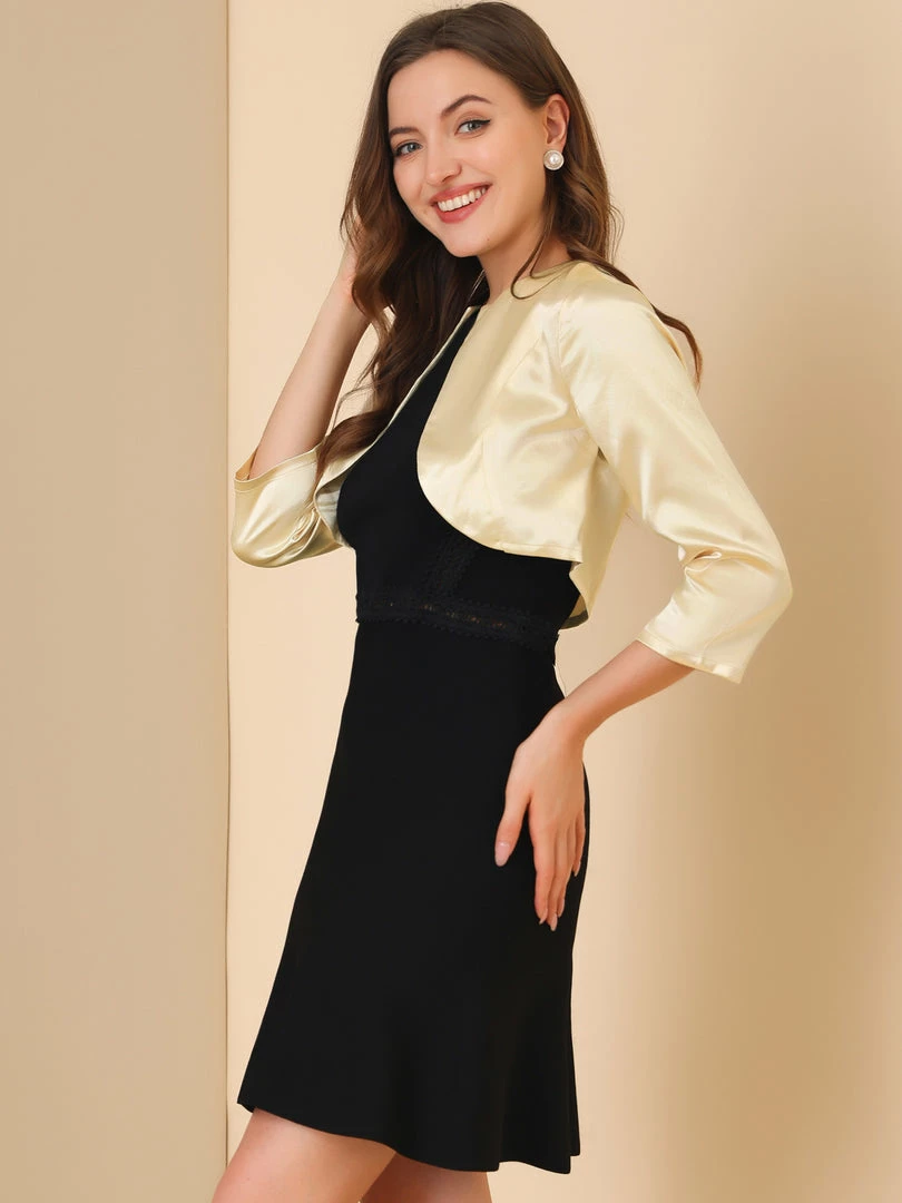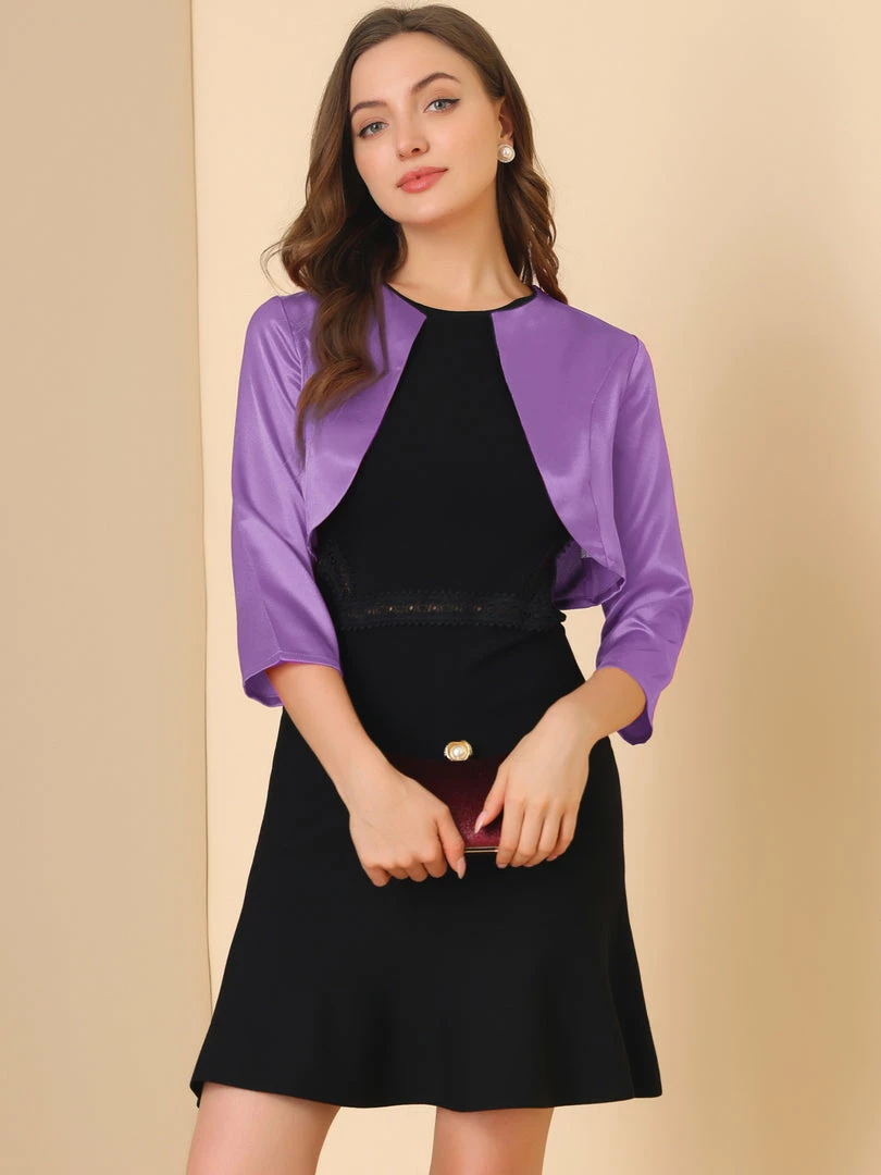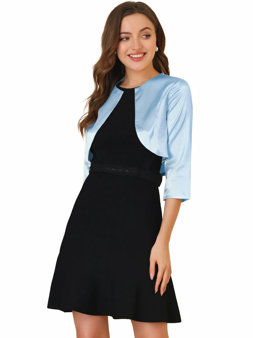 Allegra K Women’s Satin Cardigan Elegant 3/4 Sleeve Solid Bolero Shrug Tops