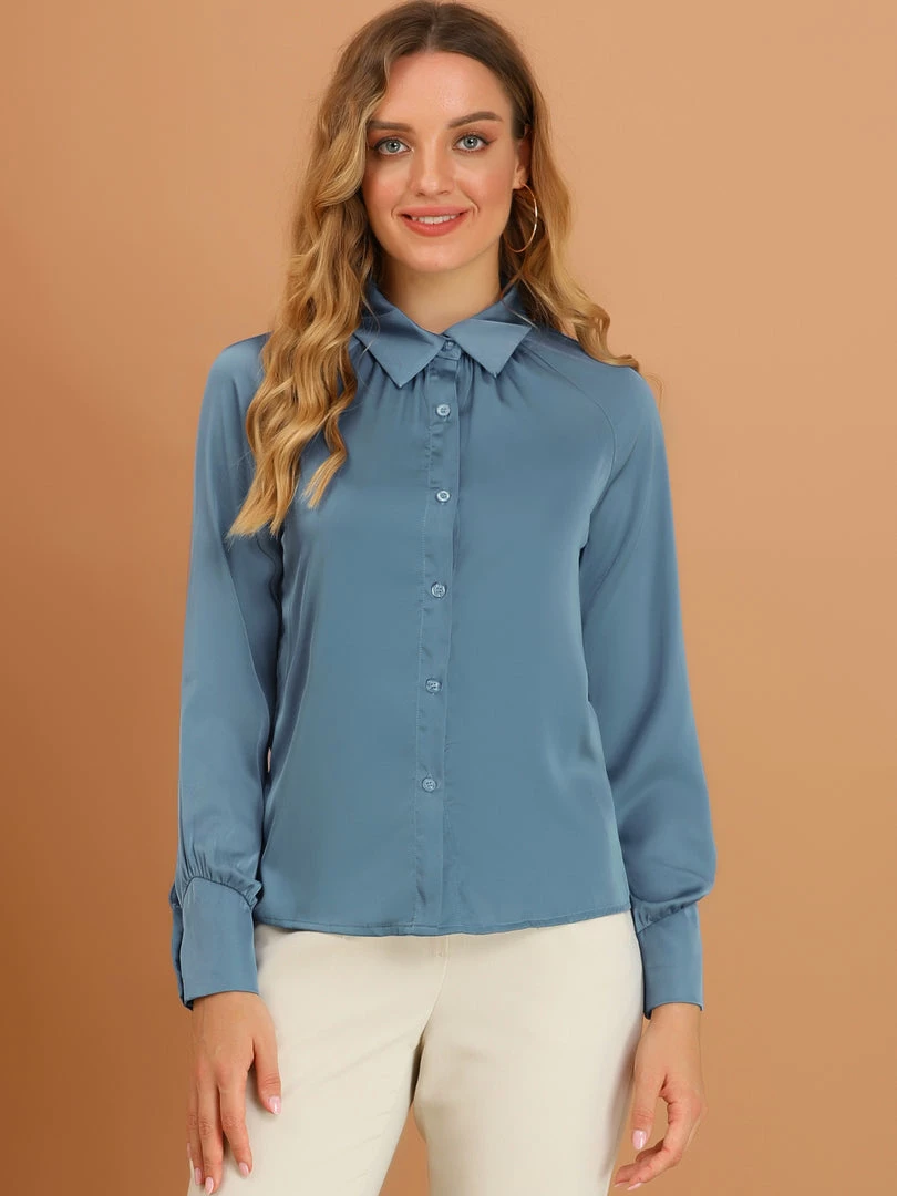 Allegra K Women’s Satin Long Sleeve Collar Button Down Shirt