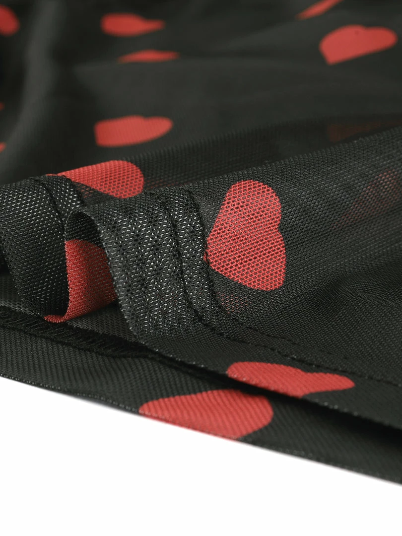 Allegra K Women’s Semi-Sheer Blouse Sexy Heart Print Crop Tops Party Mesh Top