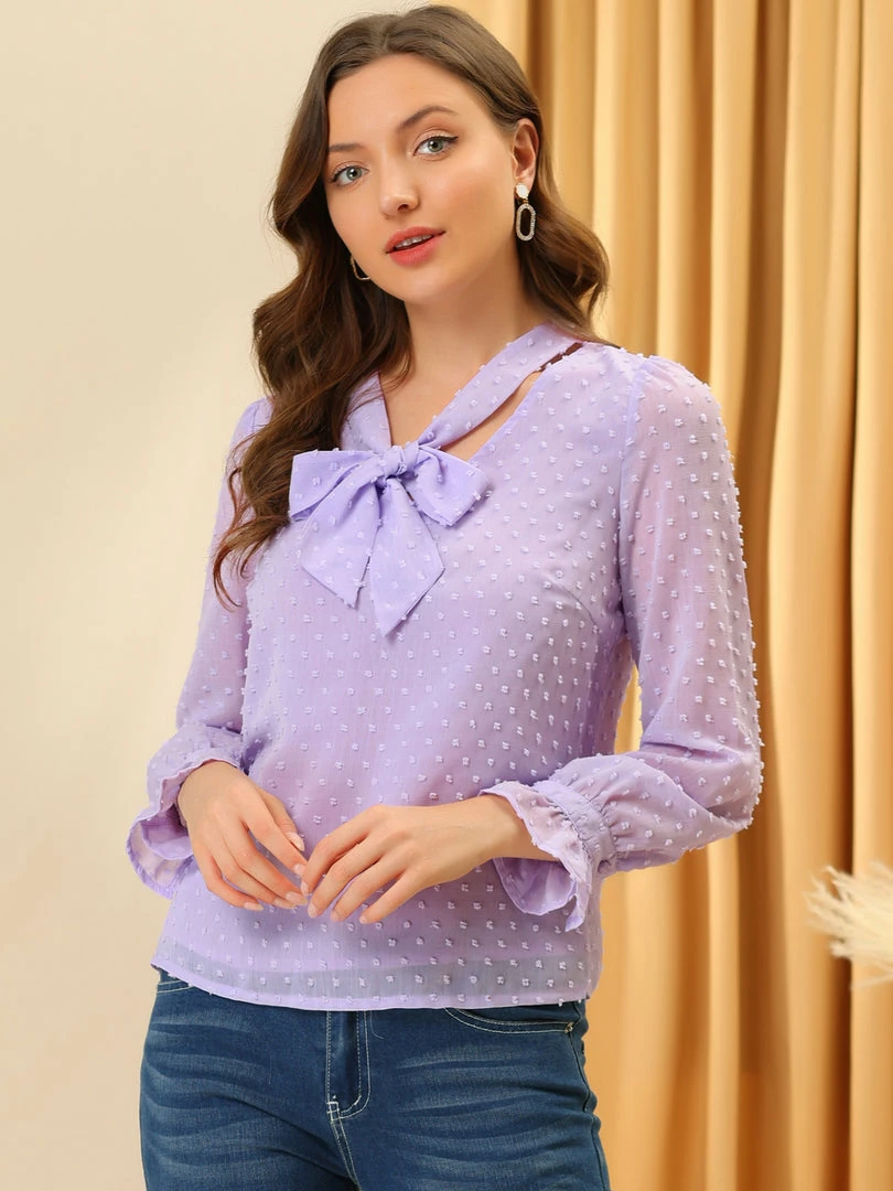 Allegra K Women’s Semi-sheer Tie Neck Swiss Dots Top