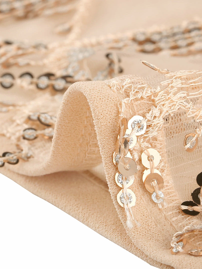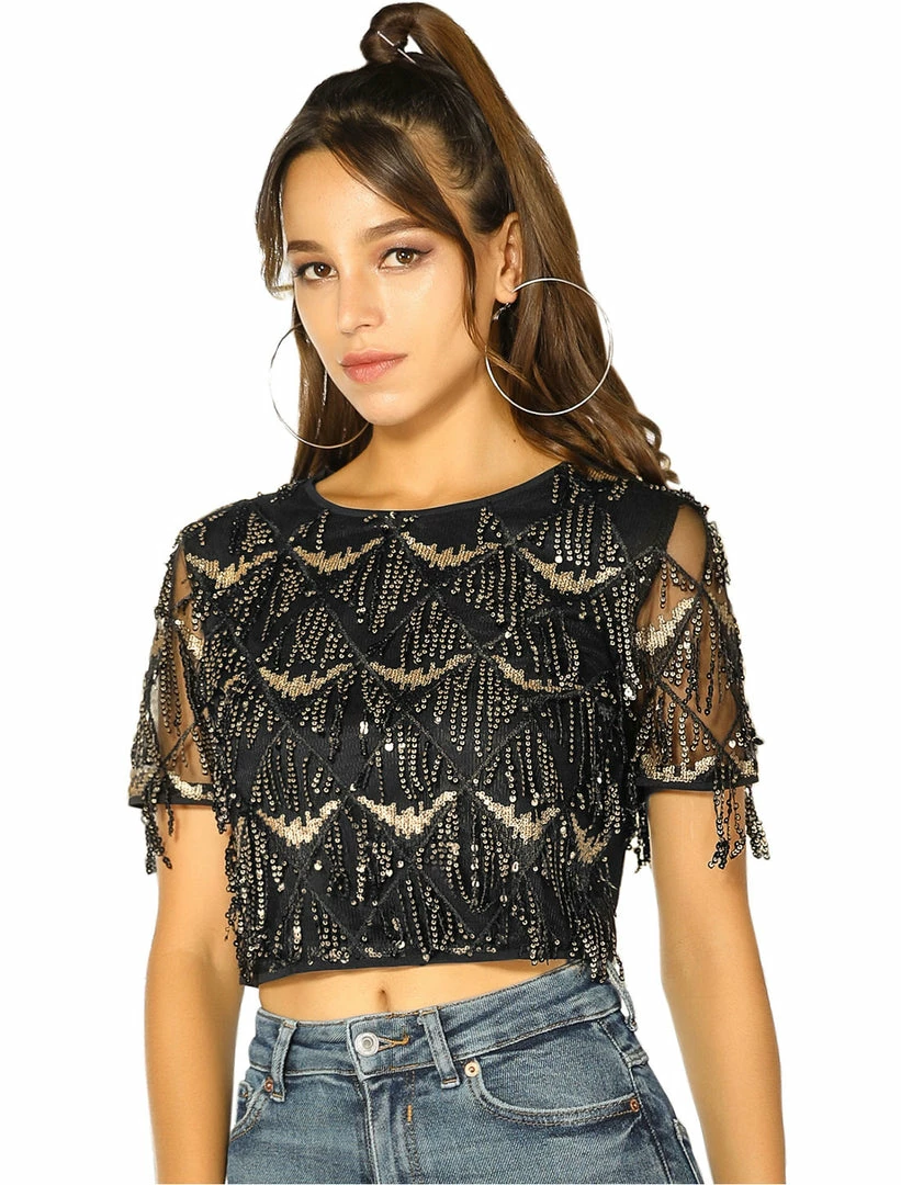 - This cropped top features beautiful shining sequins on fringe tassels that shimmer and shine when you at the party.
