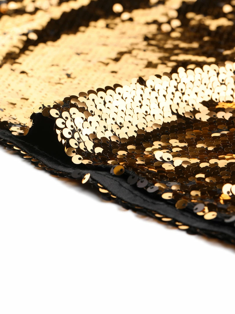 - A simple vest is given a striking update with a sequin overlay, with a v-front for flattering shape – perfect to pair with the coordinating sequin skirt for a festive ensemble or on its own with trousers and heeled boots.