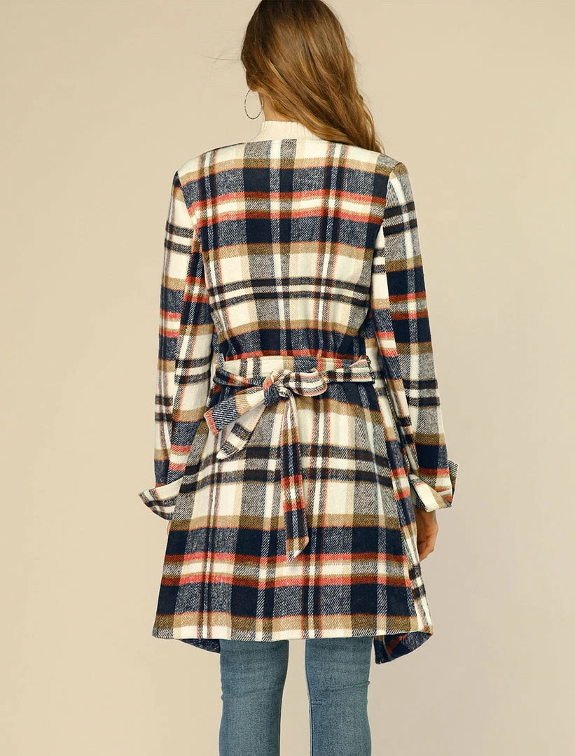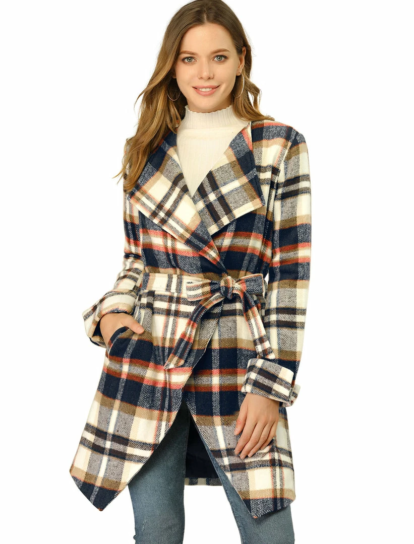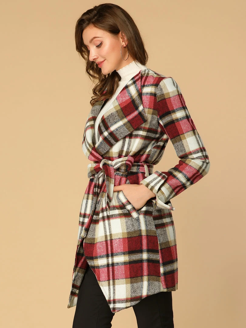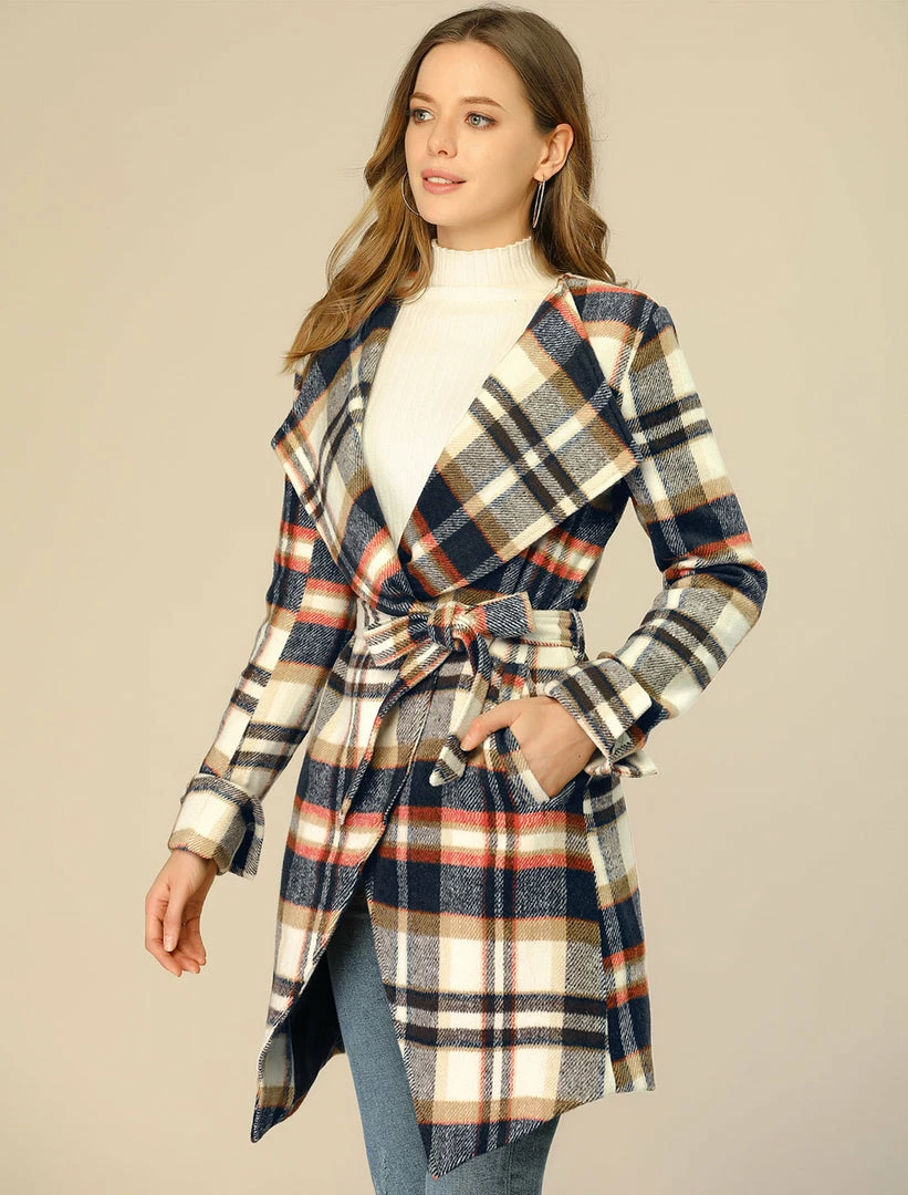 • The plaid wrap coat with waist belt makes the perfect addition to your everyday modern wardrobe.