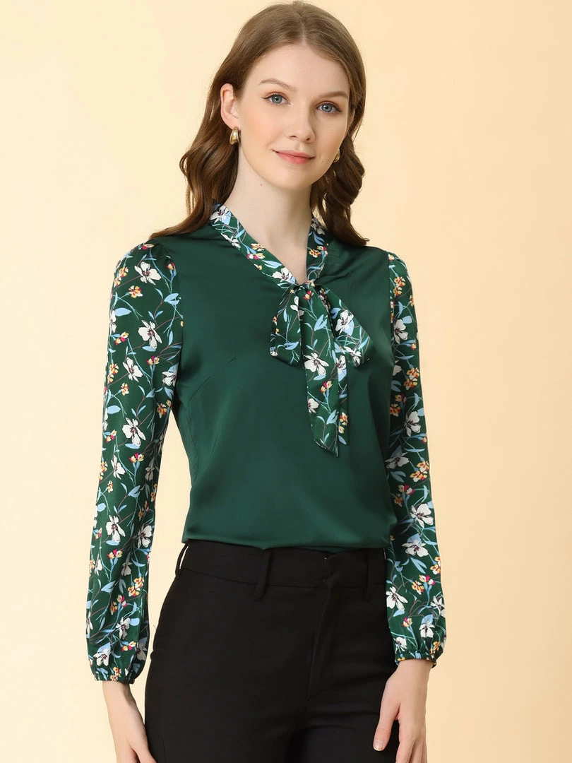 Allegra K Women’s Shirt Contrast Panel Long Sleeve Floral Blouse