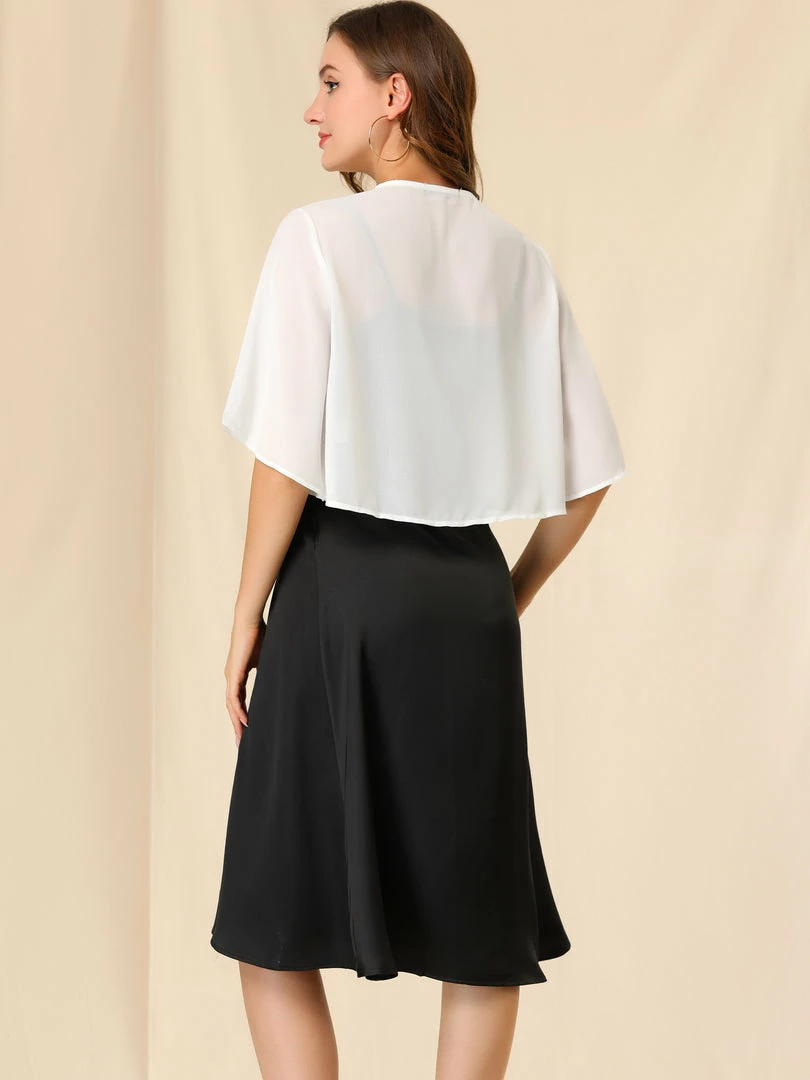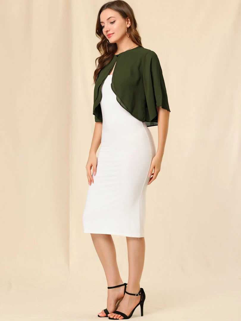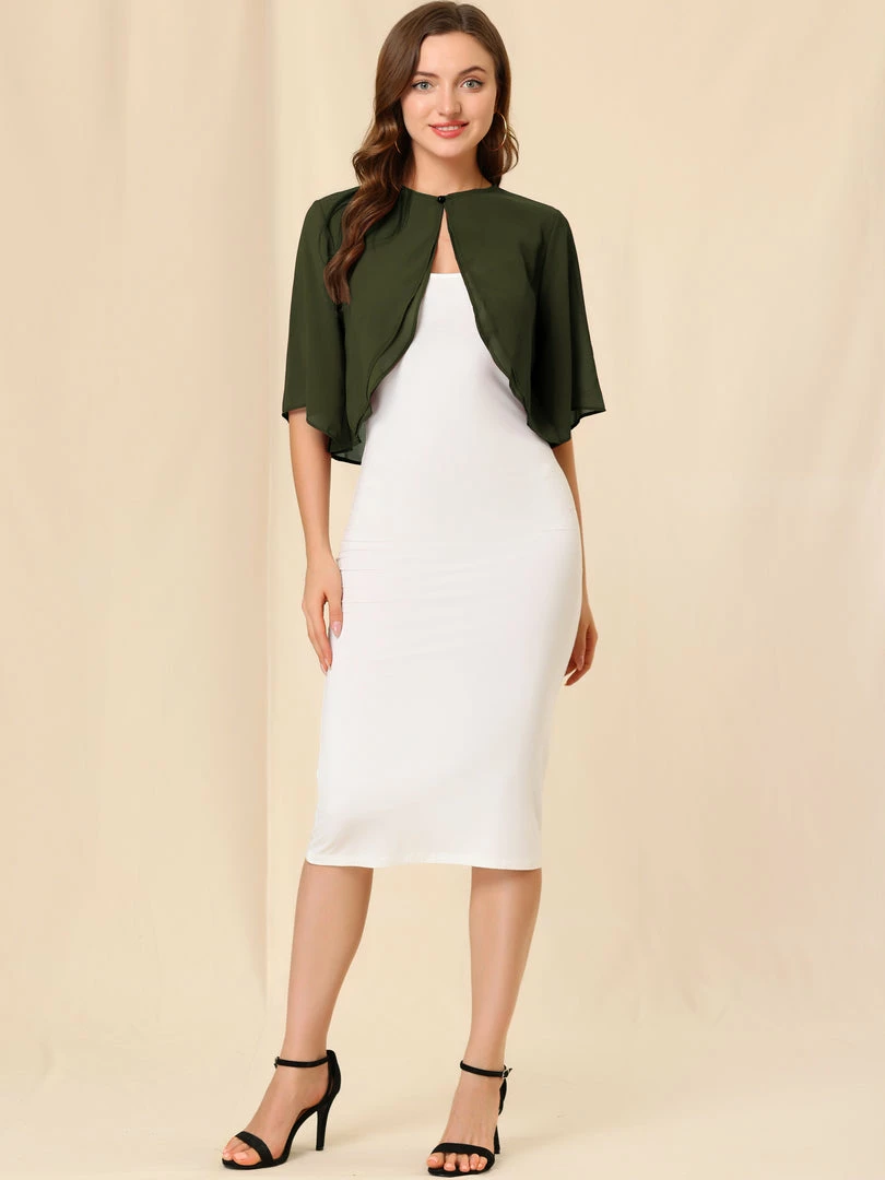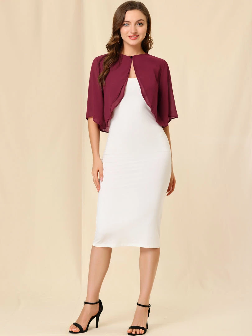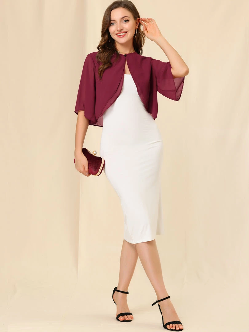 - This chiffon cardigan features short sleeves and cropped fit, perfectly covered up with sleeveless dresses for a wedding/evening look.