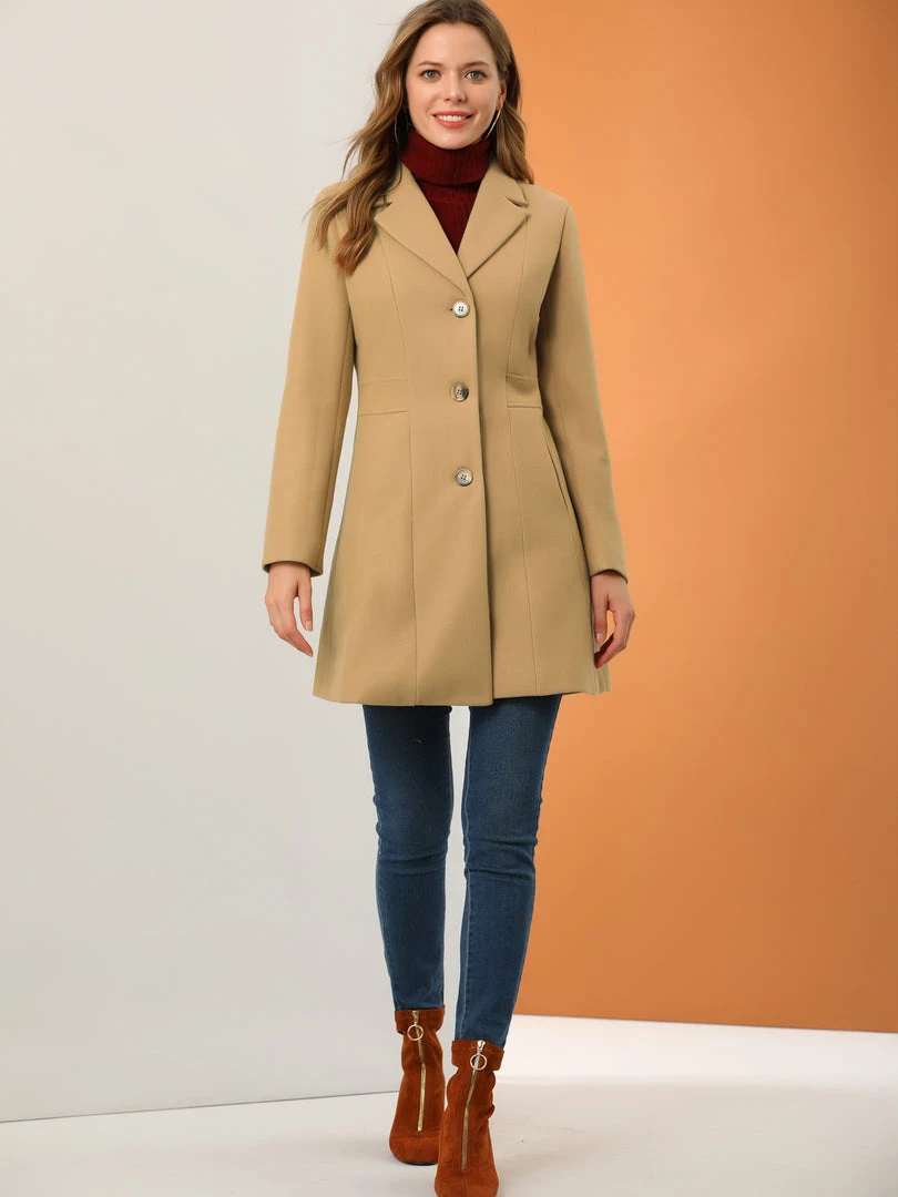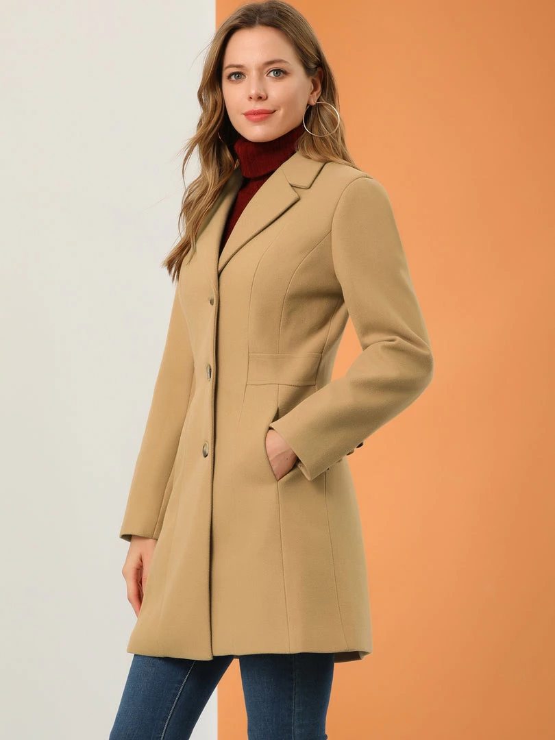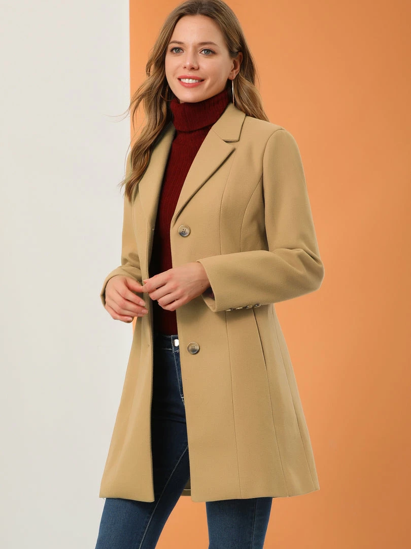 Allegra K Women’s Single Breasted Notched Lapel Long Winter Coats