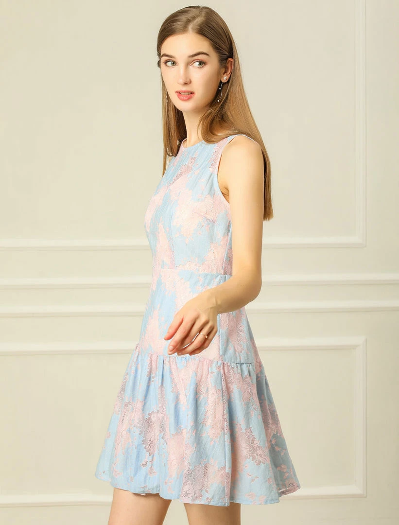 Allegra K Women’s Sleeveless A-Line Elegant Ruffle Hem Floral Lace Dress