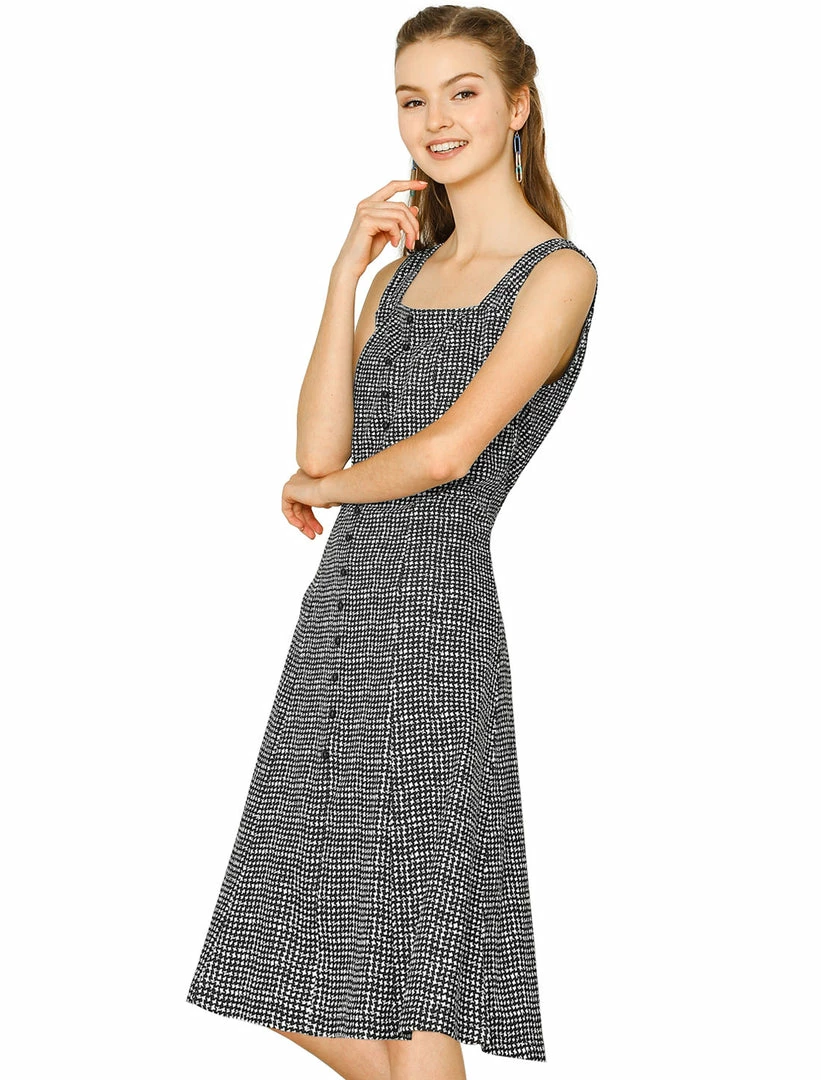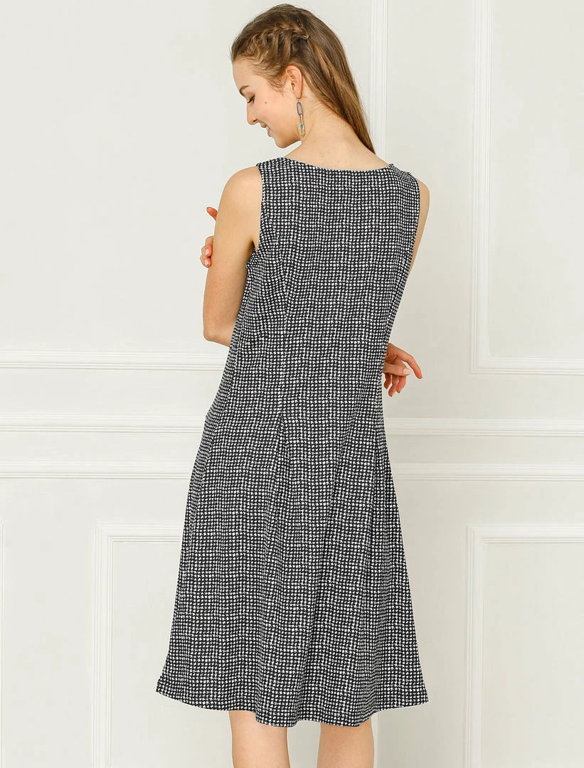 Allegra K Women’s Sleeveless Square Neck A-Line Houndstooth Print Dress