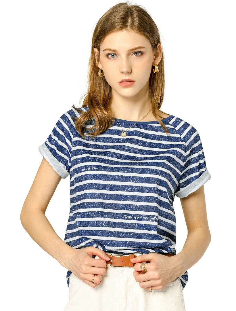 SKU: allegra-k-6816754139316 Categories: Clothing, Tops & Blouses, Women Tags: $20 - $35, Blue, Loose fit, Short Sleeve, Striped, T-Shirts, Tops & Blouses, Women's Clothing