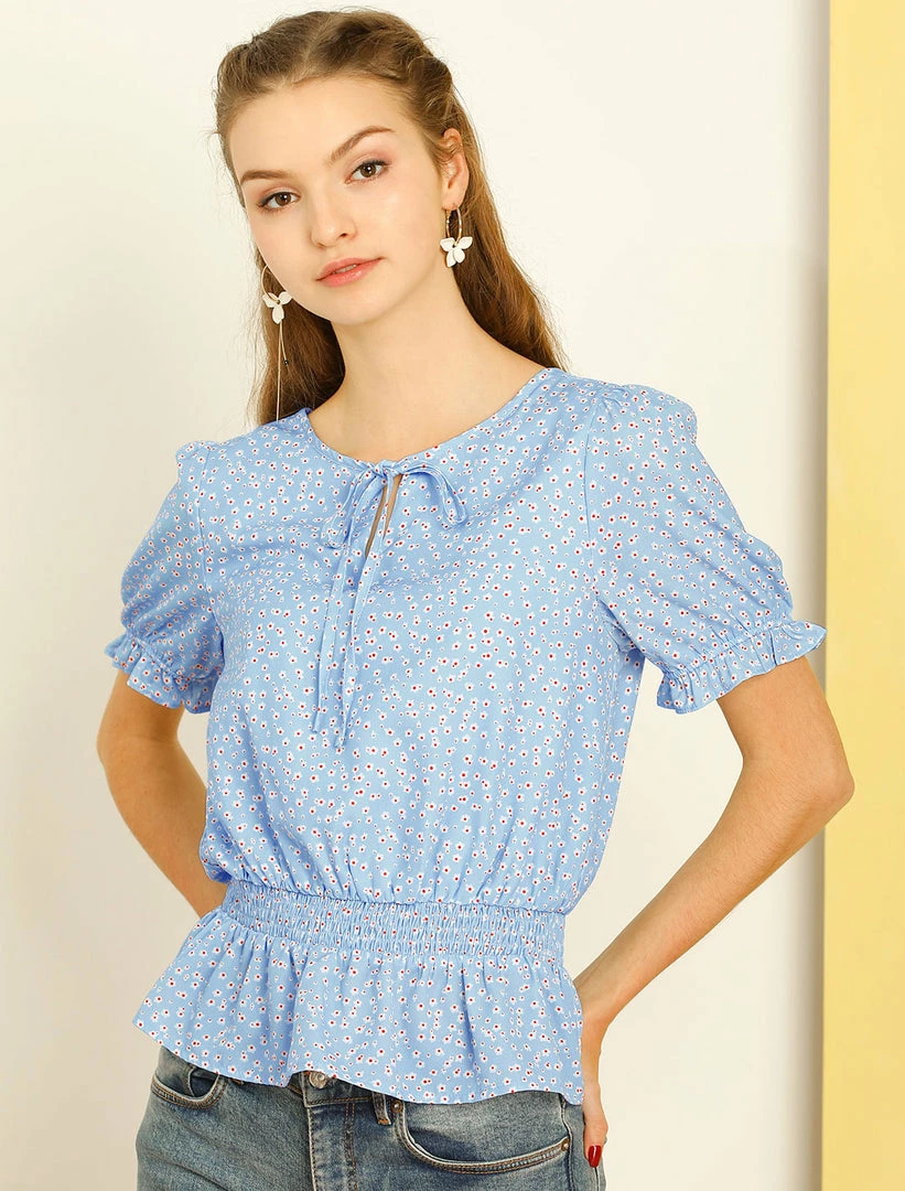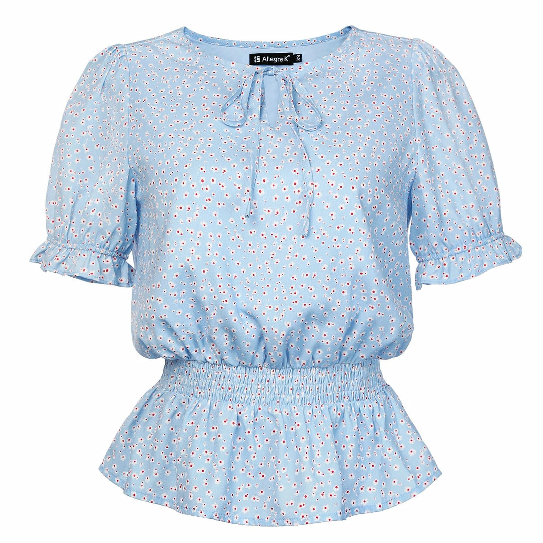 Allegra K Women’s Smocked Vintage Floral Elastic Waist Tops