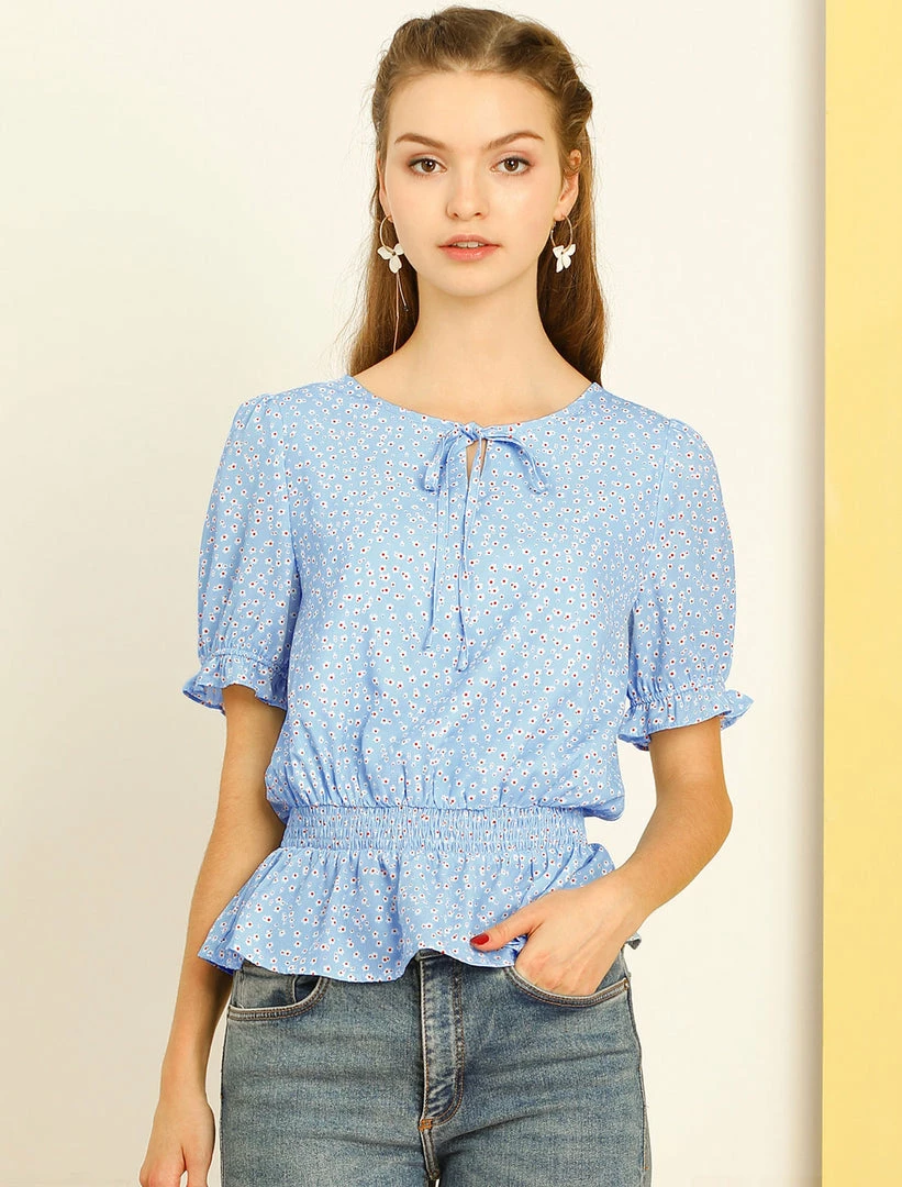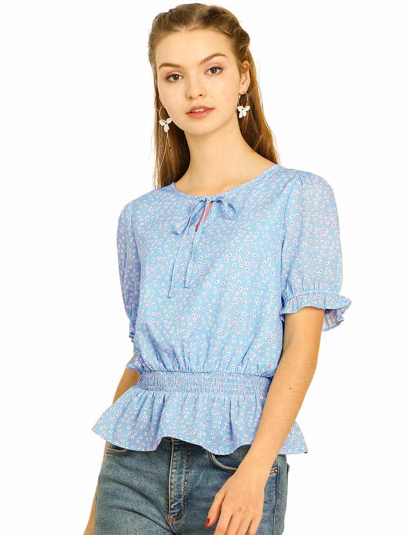 SKU: allegra-k-6762044031156 Categories: Clothing, Tops & Blouses, Women Tags: Floral, Loose fit, M, S, Short Sleeve, Tie Neck, Tops & Blouses, XS