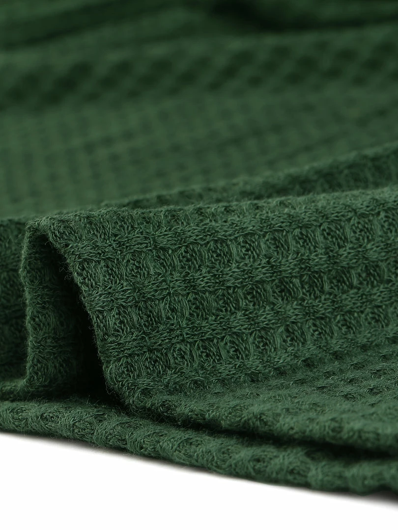 - The waffle pattern romanticizes this V-neck sweater knit with a cozy fabric.