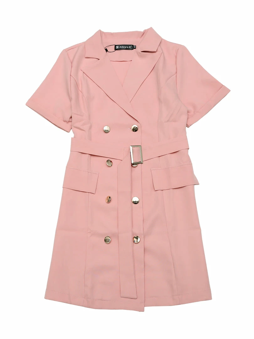 Allegra K Women’s Solid Double-Breasted Turn-Down Collar Casual Work Belted Dress
