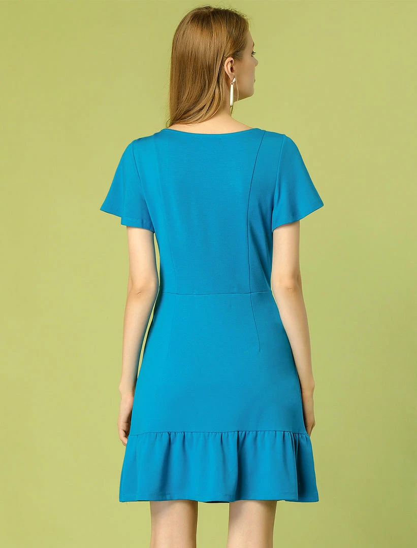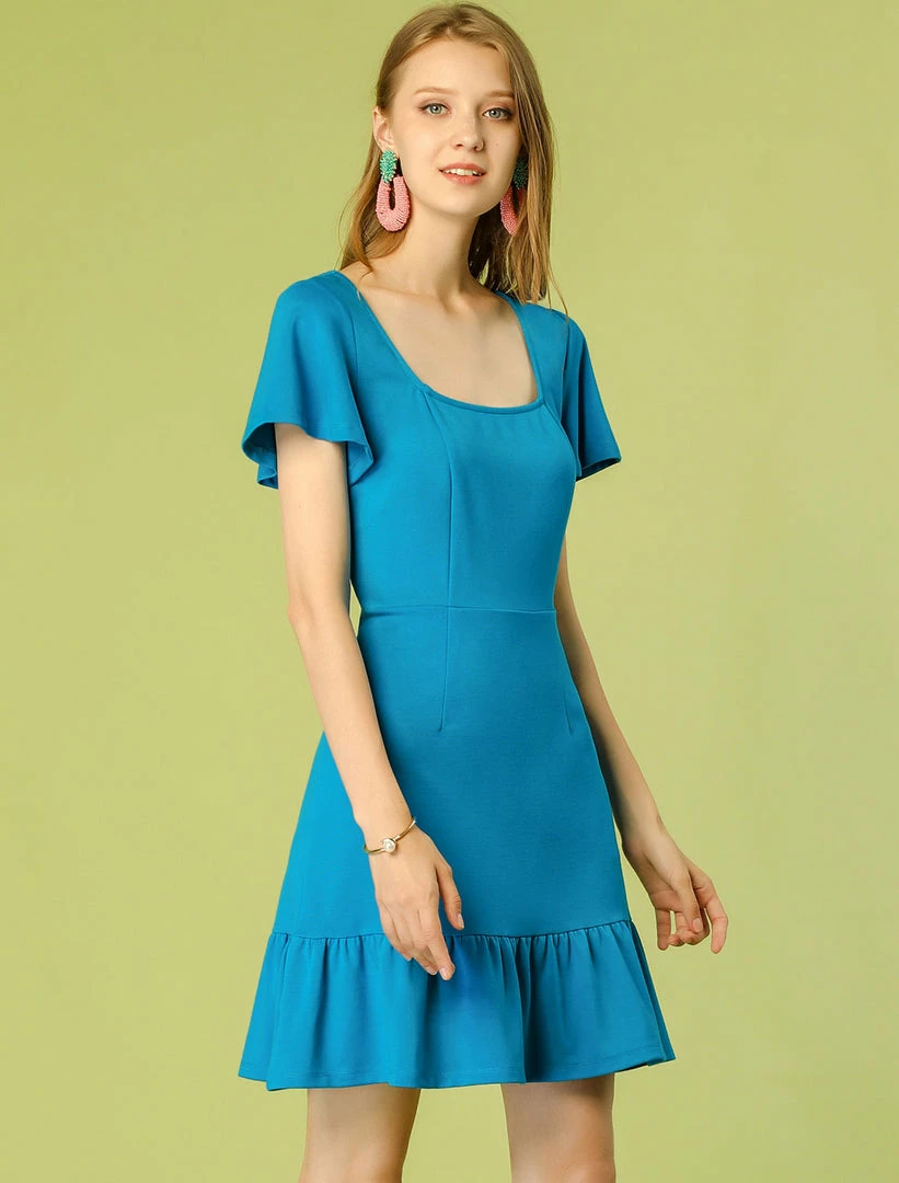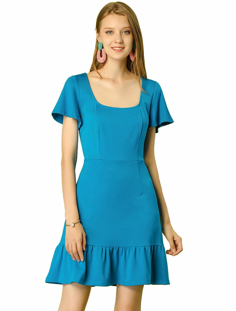 Allegra K Women’s Square Neck Flutter Sleeve Ruffle Hem Dress