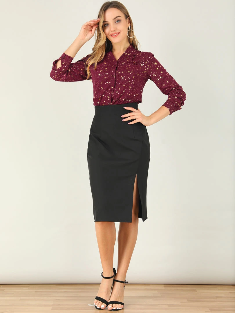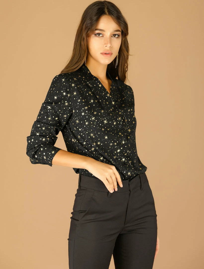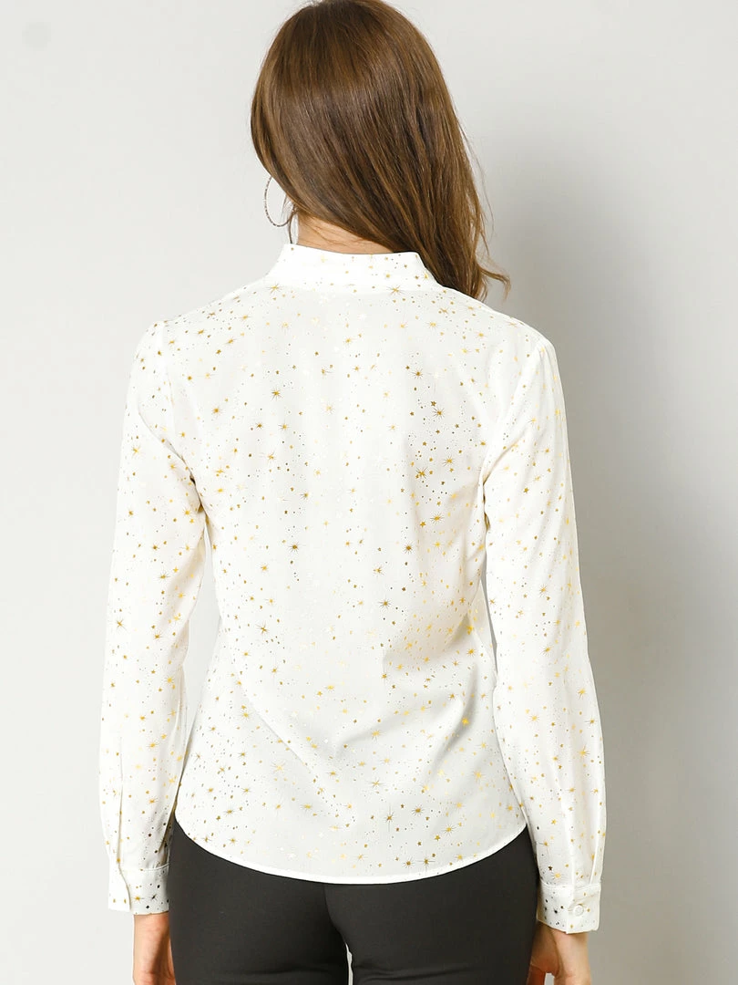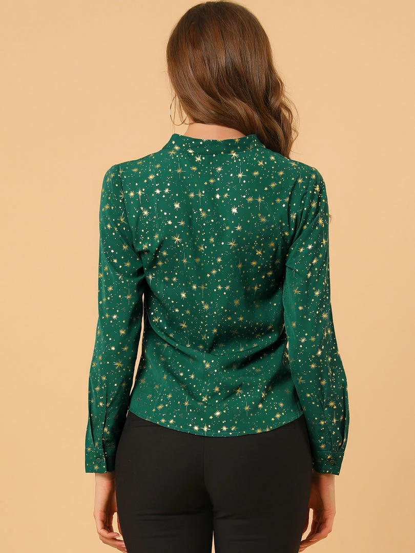 Allegra K Women’s Stand Collar Long Sleeve Metallic Dots Stars Blouse Top