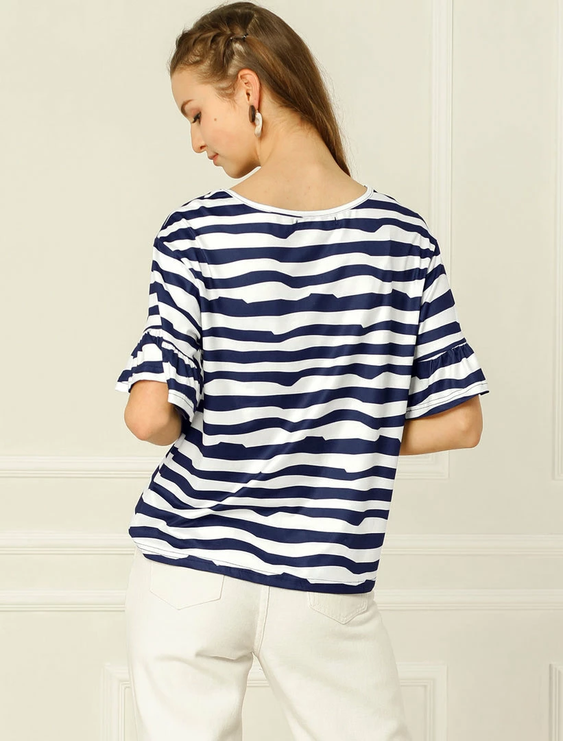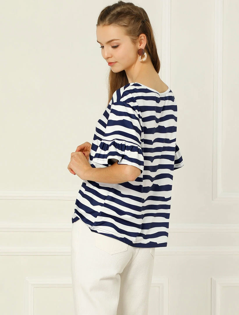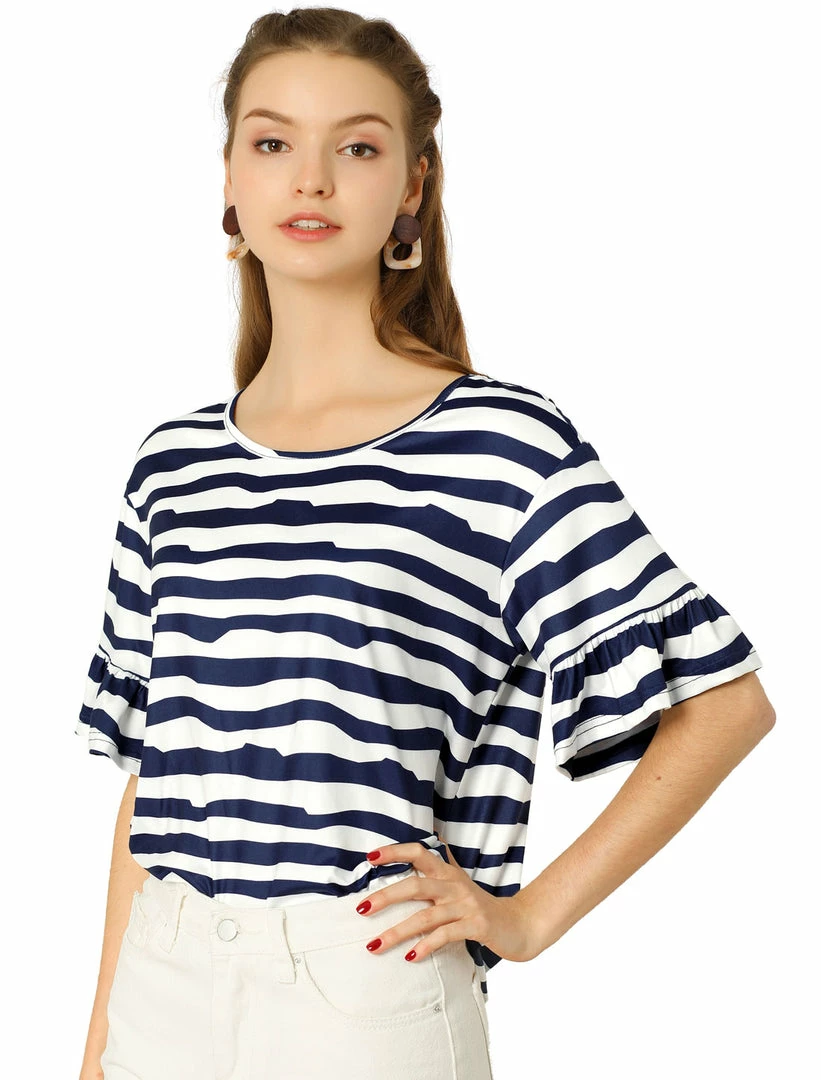 Allegra K Women’s Striped Flare Sleeve Round Neck Loose Tops Casual T-Shirt