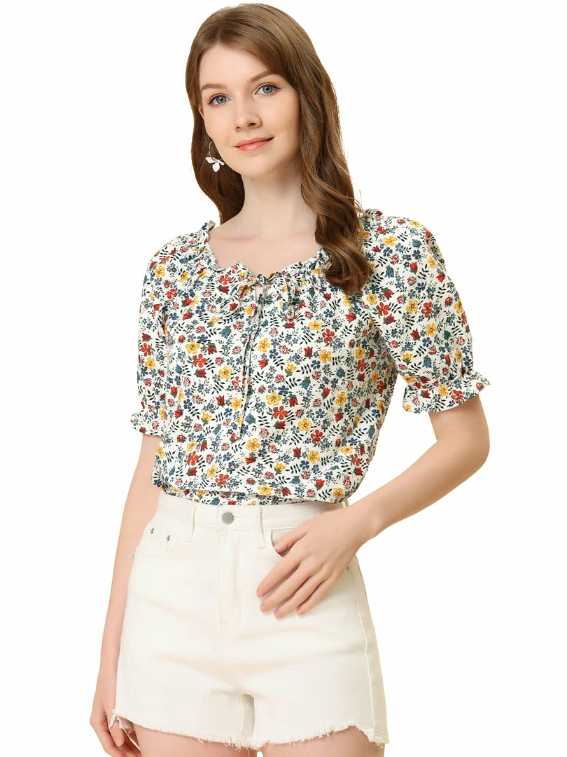 Allegra K Women’s Sweetheart Neck Raglan Sleeve Retro Ruffle Floral Tops